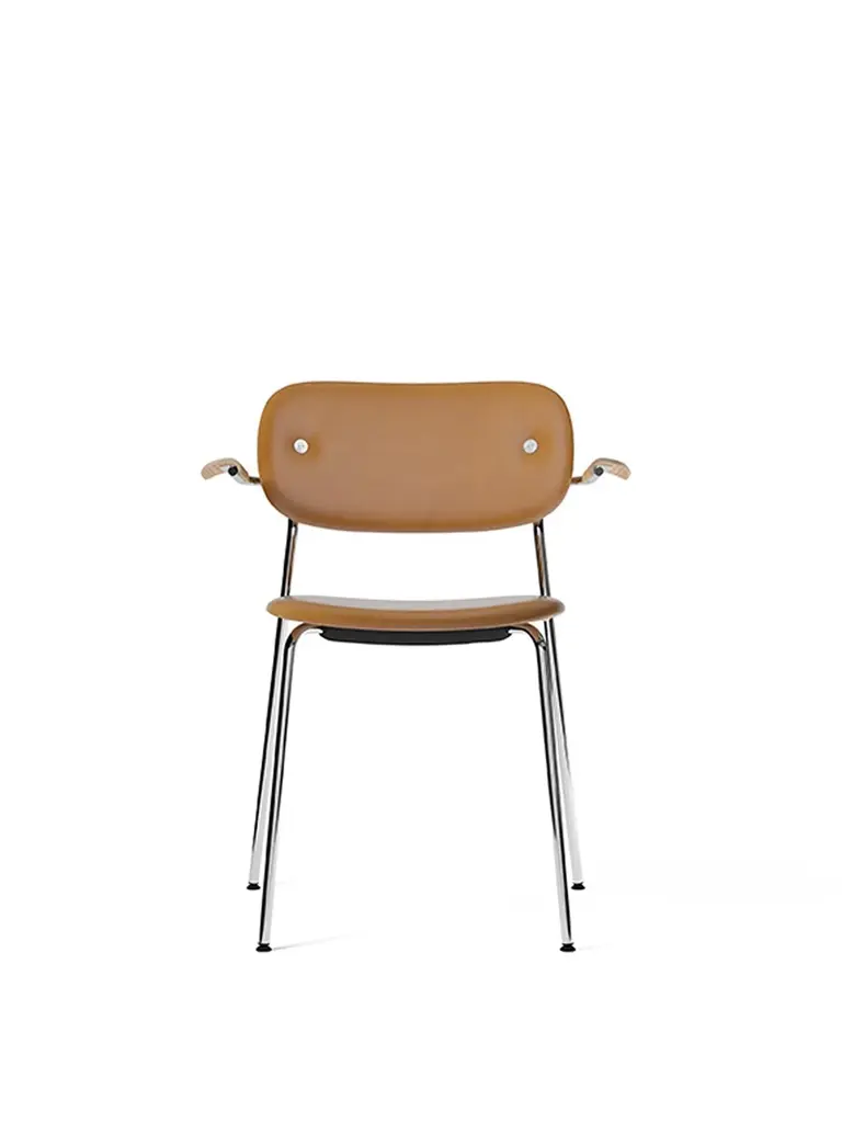 Together, mutually, in common: the words that define the prefix ‘co-’ are at the heart of our new Co Chair design. Conceived in collaboration with The Office Group and Norm Architects, the multi-functional chair adapts to a wide range of needs and interior styles. It addresses the space and design challenges shared by spaces both private and public, making it as appealing in homes as in shared areas like conferences, boardrooms, and touch-down co-working lounges. Drawing on The Office Group’s extensive knowledge of workplace needs, the Co Chair pairs a lightweight, sleek profile with great seating comfort, and the option to stack up to 12 to 15 chairs in a compact tower. Aesthetically, the design’s contoured form and warm materials bring Norm Architects' signature, human-centered minimalism to residential and hospitality applications. The design’s versatility is the result of a thoughtful construction and a wide array of materials: with numerous veneer finishes and upholstery options to choose from, the Co Chair is easy to customize to create the desired expression and experience. The chair is distinguished by a wide veneer back, whose proportions allow freedom of movement and provide maximum comfort. Comfort also led the design of the backrest, which is positioned and angled for exceptional support. The Co Chair’s slender yet robust powder-coated steel frame defines the intriguing geometric silhouette, and delivers high durability. Optional veneer armrests adding another aesthetic and functional dimension, serving both for added comfort and for suspending the chair off the floor for easy cleaning. Stackability Seat and Fully Upholstered Co Dining Chair: Stacks 4 on the ground and up to 15 on the trolley Non-Upholstered Co Dining Chair: Stacks 4 on the ground and up to 20 on the trolley Plastic Co Dining Chair, Outdoor: Stacks 4 on the ground and up to 20 on the trolley
