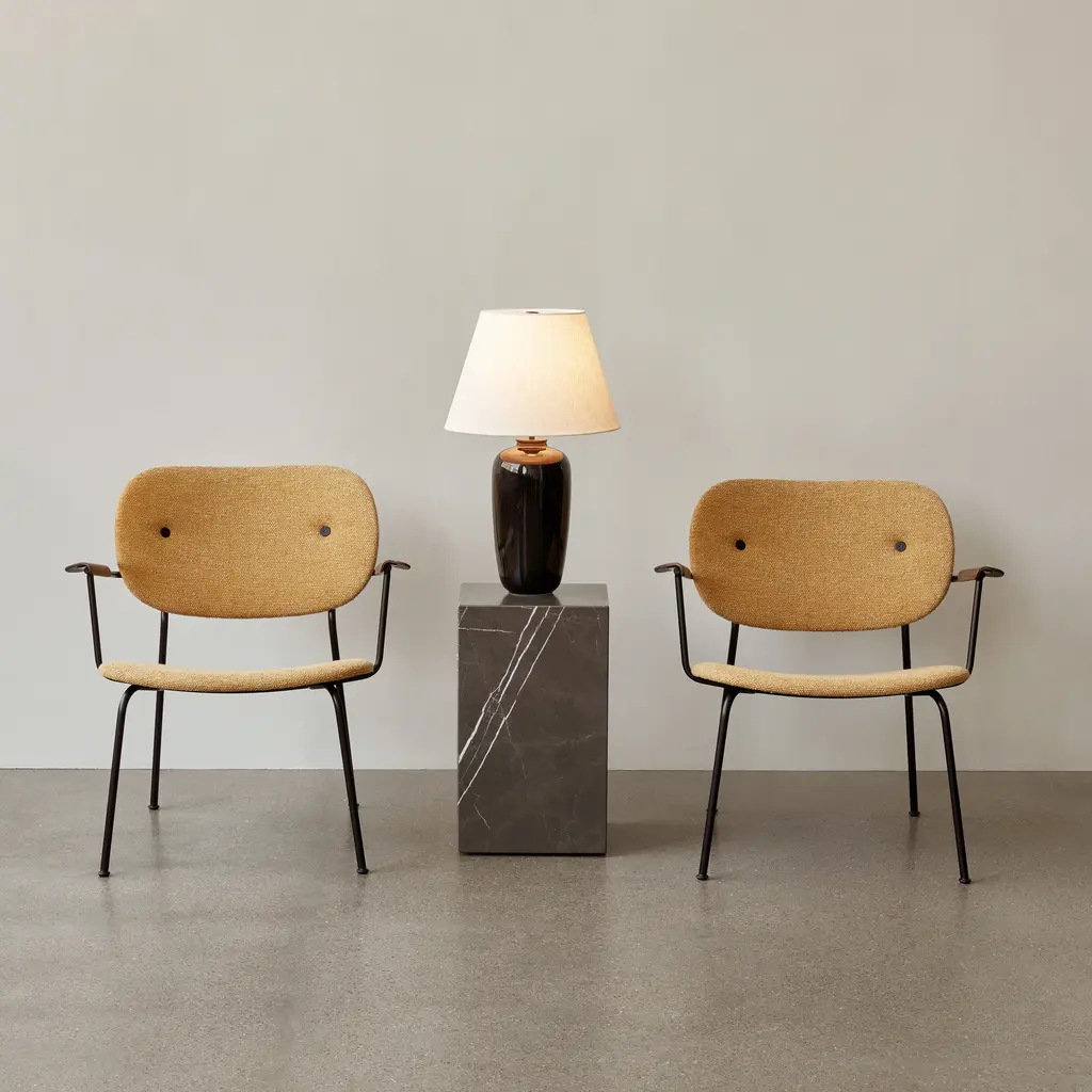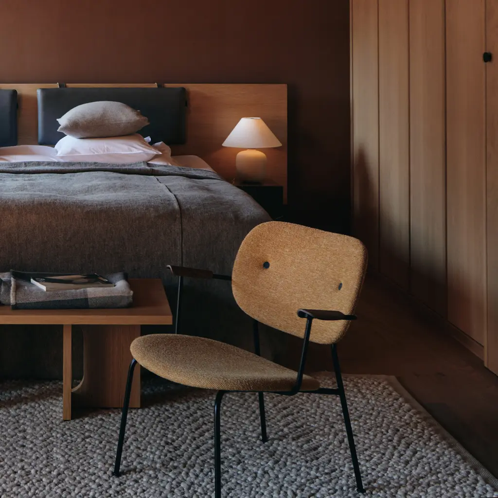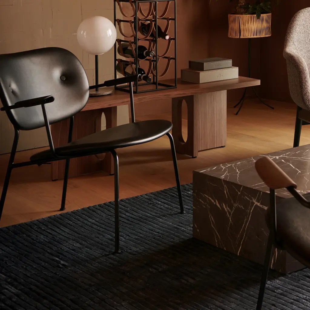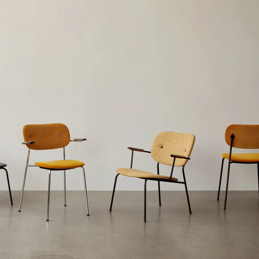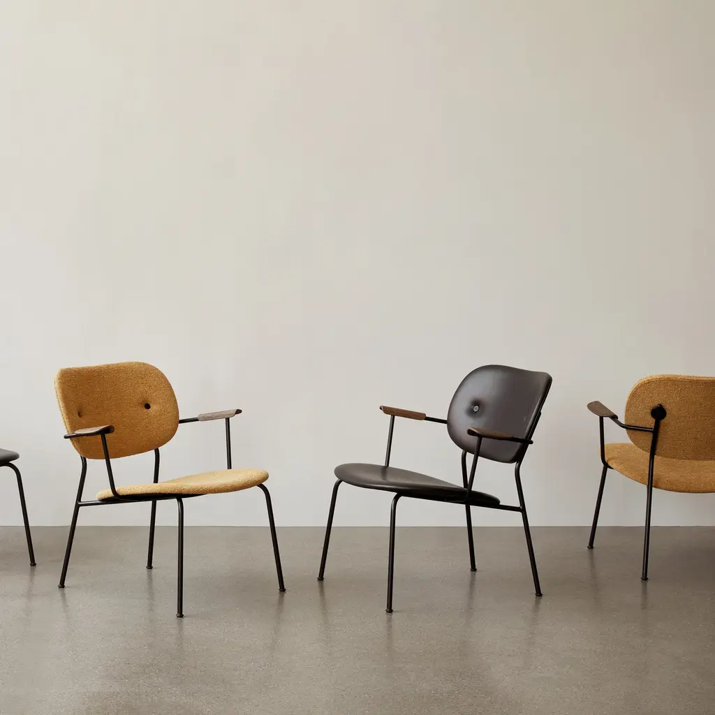 Audo extends the multi-purpose ethos of Norm Architects' Co collection in a versatile upholstered lounge chair with a more laid-back look than its dining counterpart. With the wide backrest angled for comfort, the curved armrests and upholstered seat both support and embrace the body while the slender powder-coated steel frame melds beautifully with both residential and contract surroundings.