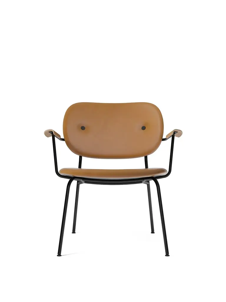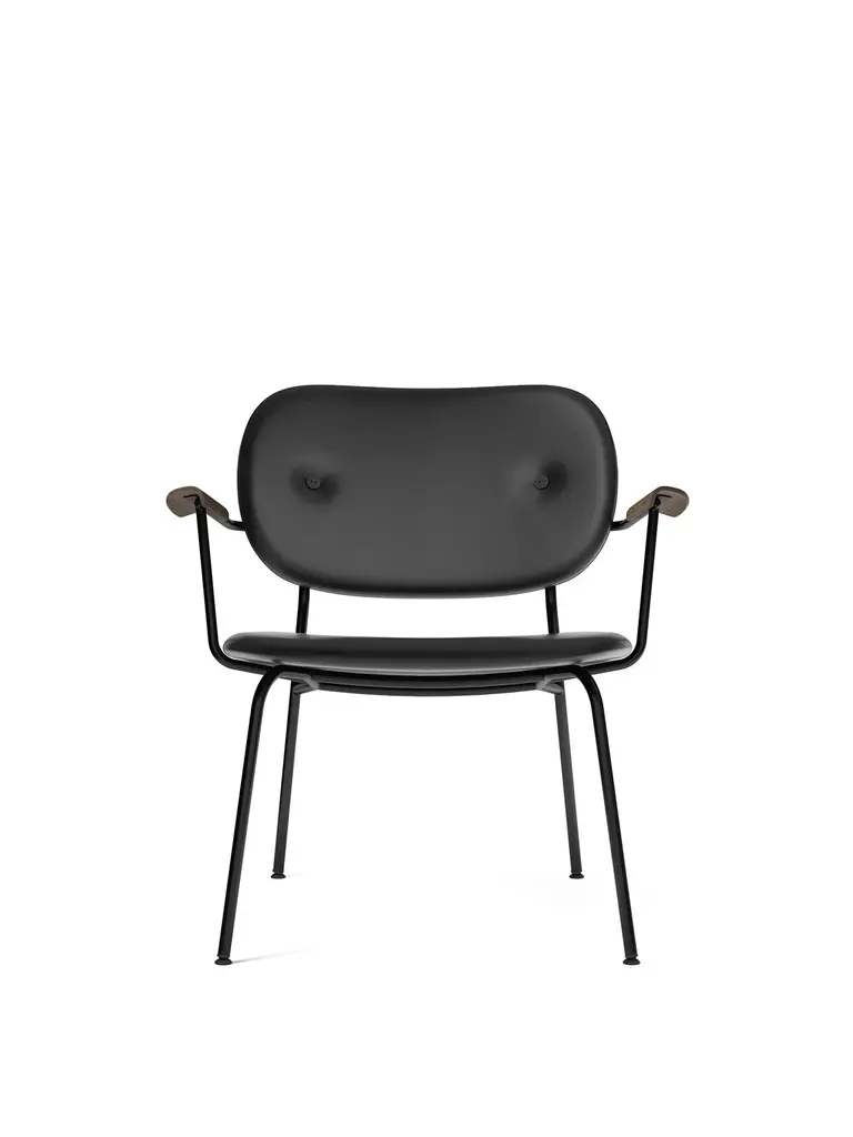Our Co Chair series proves that comfort doesn't have to come at the cost of beauty. Equal parts elegance and ease, its graceful minimal, modern frame and supportive, angled backrest make sitting a pleasure — for how ever long it lasts. The new Co Lounge Chair continues the collection's legacy, combining steel, woodworking and upholstering skills and unexpected comfort to create an iconic chair for relaxation that fits seamlessly into any setting. Co Lounge Chair is a new and lightweight lounger with exceptional sitting comfort. Inspired by classic designs that combine metalwork and woodwork to iconic effect, the new iteration purposefully re-spaces its different components to create a lighter, more laid-back look than its dining predecessor. The comfortable design enhances interior spaces rather than demanding attention in a room. The form-pressed wood veneer backrest is angled for comfort and the curved armrests and upholstered seat support and embrace the body. The slender powder-coated steel frame belies its strength, providing a stable and sleek foundation on which to stand. Fully customizable, it melds beautifully with its surroundings — whether at home in a cozy living room corner or placed in a hotel lobby or office reception.