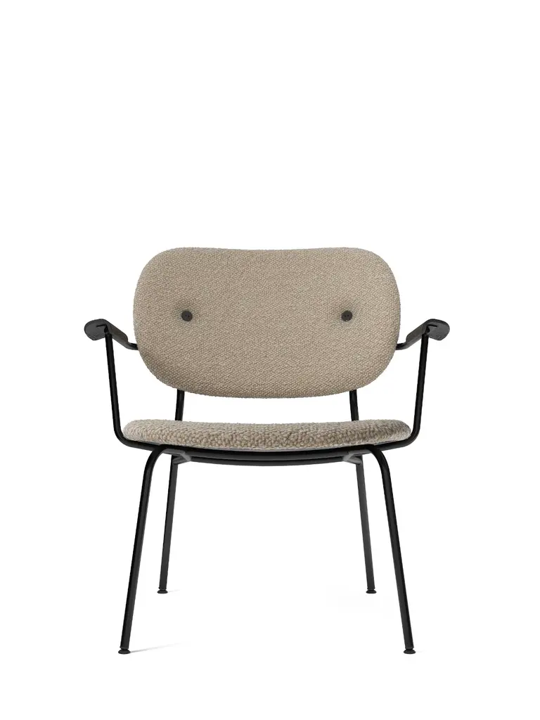 Our Co Chair series proves that comfort doesn't have to come at the cost of beauty. Equal parts elegance and ease, its graceful minimal, modern frame and supportive, angled backrest make sitting a pleasure — for how ever long it lasts. The new Co Lounge Chair continues the collection's legacy, combining steel, woodworking and upholstering skills and unexpected comfort to create an iconic chair for relaxation that fits seamlessly into any setting. Co Lounge Chair is a new and lightweight lounger with exceptional sitting comfort. Inspired by classic designs that combine metalwork and woodwork to iconic effect, the new iteration purposefully re-spaces its different components to create a lighter, more laid-back look than its dining predecessor. The comfortable design enhances interior spaces rather than demanding attention in a room. The form-pressed wood veneer backrest is angled for comfort and the curved armrests and upholstered seat support and embrace the body. The slender powder-coated steel frame belies its strength, providing a stable and sleek foundation on which to stand. Fully customizable, it melds beautifully with its surroundings — whether at home in a cozy living room corner or placed in a hotel lobby or office reception.