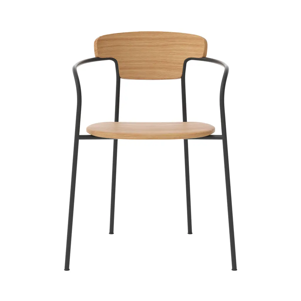 Our Co Chair series proves that comfort doesn't have to come at the cost of beauty. Equal parts elegance and ease, its graceful minimal, modern frame and supportive, angled backrest make sitting a pleasure — for how ever long it lasts. The new Co Lounge Chair continues the collection's legacy, combining steel, woodworking and upholstering skills and unexpected comfort to create an iconic chair for relaxation that fits seamlessly into any setting. Co Lounge Chair is a new and lightweight lounger with exceptional sitting comfort. Inspired by classic designs that combine metalwork and woodwork to iconic effect, the new iteration purposefully re-spaces its different components to create a lighter, more laid-back look than its dining predecessor. The comfortable design enhances interior spaces rather than demanding attention in a room. The form-pressed wood veneer backrest is angled for comfort and the curved armrests and upholstered seat support and embrace the body. The slender powder-coated steel frame belies its strength, providing a stable and sleek foundation on which to stand. Fully customizable, it melds beautifully with its surroundings — whether at home in a cosy living room corner or placed in a hotel lobby or office reception.