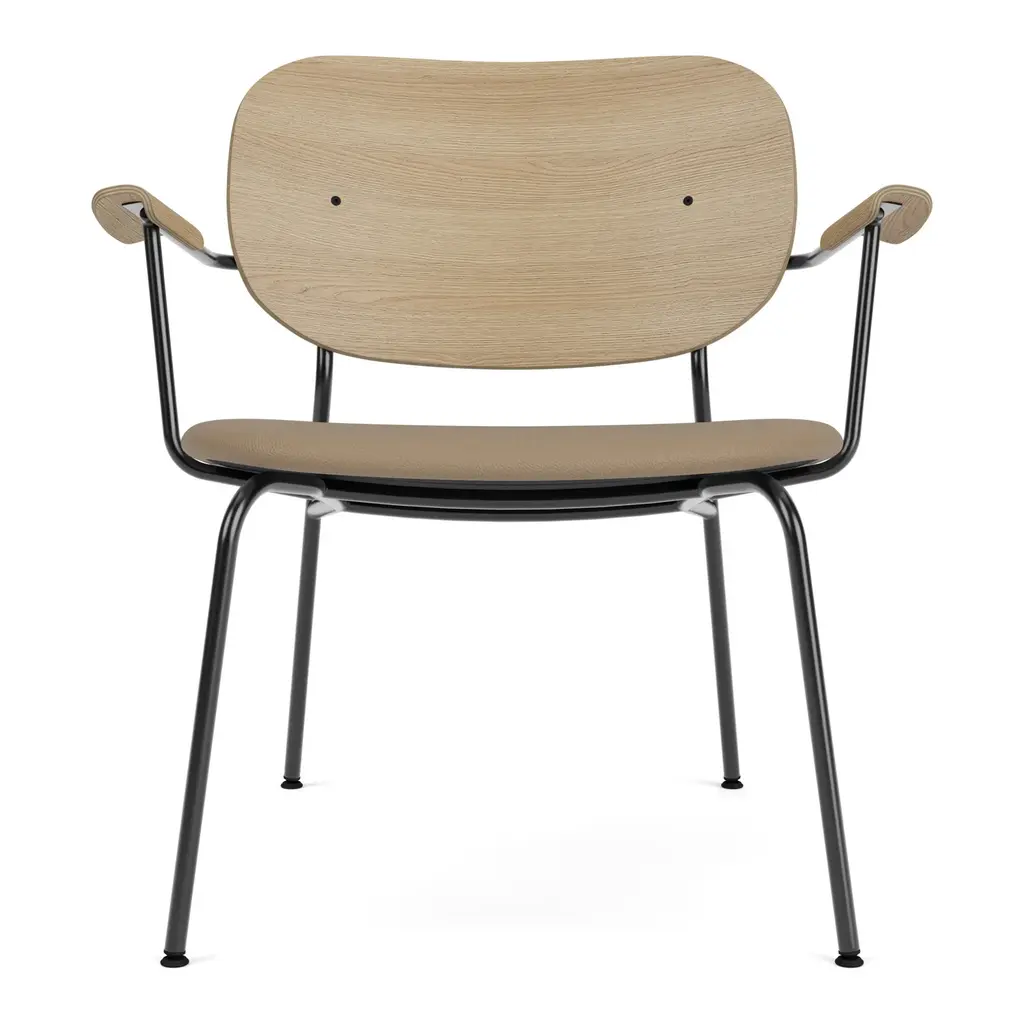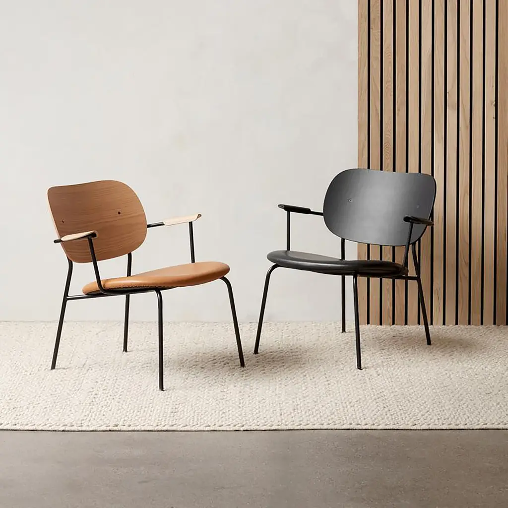 Together, mutually, in common: the words that define the prefix ‘co-’ are at the heart of our new Co Chair design by Menu Design now Audo Copenhagen. Conceived in collaboration with The Office Group and Norm Architects, the multi-functional chair adapts to a wide range of needs and interior styles. It addresses the space and design challenges shared by spaces both private and public, making it as appealing in homes as in shared areas like conferences, boardrooms, and touch-down co-working lounges. Drawing on The Office Group’s extensive knowledge of workplace needs, the Co Chair pairs a lightweight, sleek profile with great seating comfort. Aesthetically, the design’s contoured form and warm materials bring Norm Architects’ signature, human-centered minimalism to residential and hospitality applications. The design’s versatility is the result of a thoughtful construction and a wide array of materials: with numerous veneer finishes and upholstery options to choose from, the Co Chair is easy to customize to create the desired expression and experience. The chair is distinguished by a wide veneer back, whose proportions allow freedom of movement and provide maximum comfort. Comfort also led the design of the backrest, which is positioned and angled for exceptional support. The Co Chair’s slender yet robust powder coated steel frame defines the intriguing geometric silhouette – and delivers high durability. Optional veneer armrests adding another aesthetic and functional dimension, serving both for added comfort and for suspending the chair off the floor for easy cleaning. Features