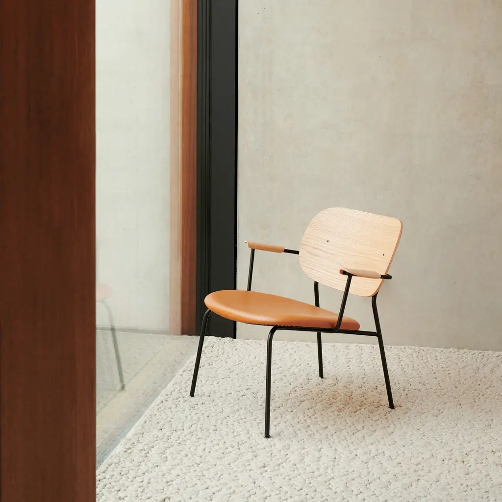 Together, mutually, in common: the words that define the prefix ‘co-’ are at the heart of our new Co Chair design by Menu Design now Audo Copenhagen. Conceived in collaboration with The Office Group and Norm Architects, the multi-functional chair adapts to a wide range of needs and interior styles. It addresses the space and design challenges shared by spaces both private and public, making it as appealing in homes as in shared areas like conferences, boardrooms, and touch-down co-working lounges. Drawing on The Office Group’s extensive knowledge of workplace needs, the Co Chair pairs a lightweight, sleek profile with great seating comfort. Aesthetically, the design’s contoured form and warm materials bring Norm Architects’ signature, human-centered minimalism to residential and hospitality applications. The design’s versatility is the result of a thoughtful construction and a wide array of materials: with numerous veneer finishes and upholstery options to choose from, the Co Chair is easy to customize to create the desired expression and experience. The chair is distinguished by a wide veneer back, whose proportions allow freedom of movement and provide maximum comfort. Comfort also led the design of the backrest, which is positioned and angled for exceptional support. The Co Chair’s slender yet robust powder coated steel frame defines the intriguing geometric silhouette – and delivers high durability. Optional veneer armrests adding another aesthetic and functional dimension, serving both for added comfort and for suspending the chair off the floor for easy cleaning. Features