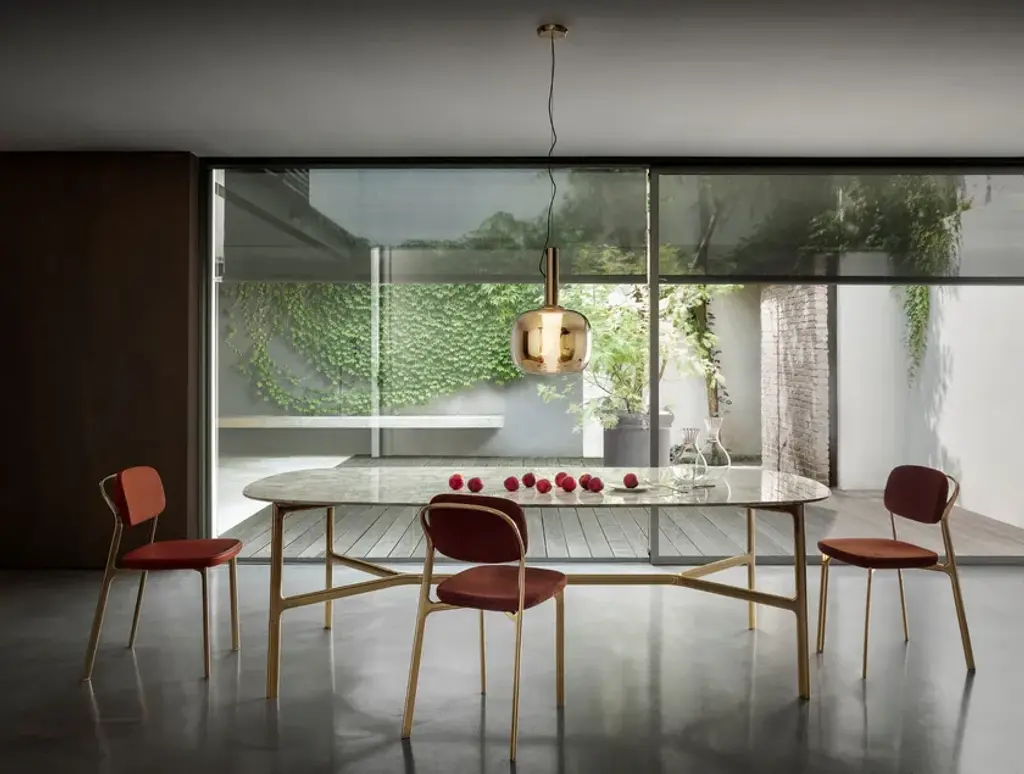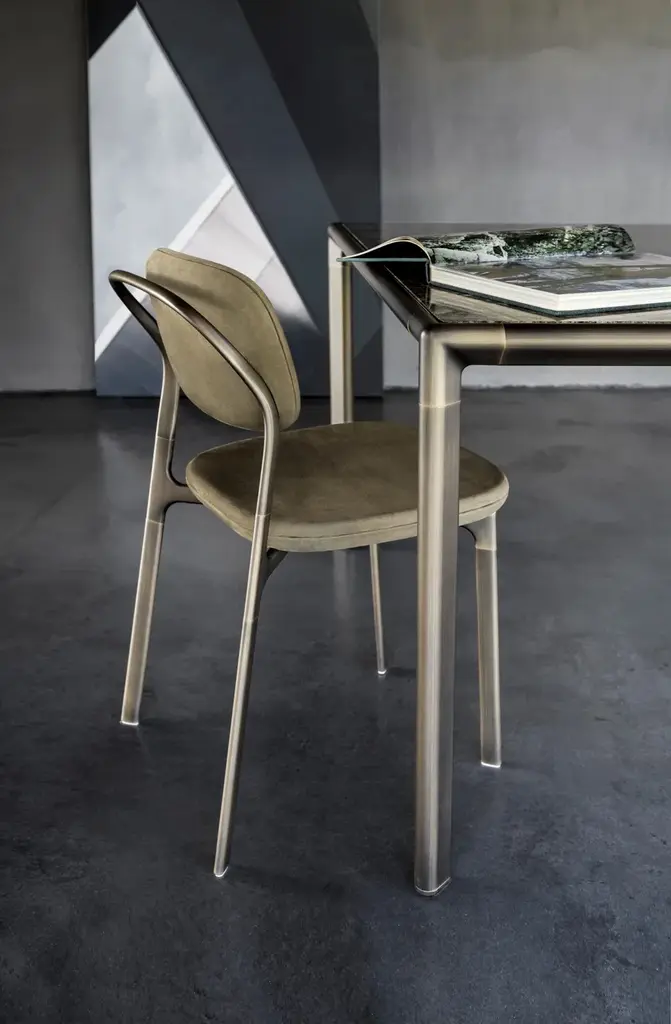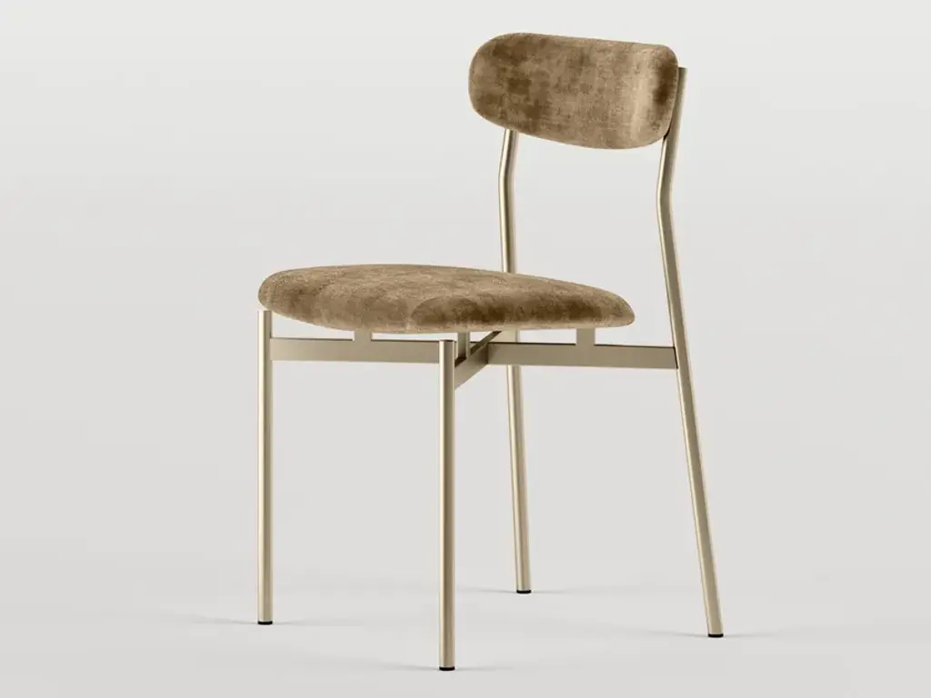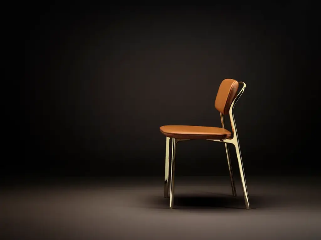 Coast Chair: POLISHED / SATIN / BURNISHED BRASS + NATURAL LEATHER.“Inspired by the Northern California coastline, the Coast Chair’s design draws its influence from a landscape of wandering, golden hills and the meandering roads that intersect them. Blending refined architectural elements with fluid gestures, the chair’s form brings surprising design moments to a functional, everyday object. The controlled, geometric legs provide a strong foundation for the more expressive upper section. The backrest appears to float using discreet joinery, and is framed by a brass arc, which acts as both a touch-point to move the chair and a resting place for a coat or bag. The Coast Chair welcomes you to sit back and stay awhile.” Branch CreativeA mix of rigorous and soft lines, the thinness of the legs and the compactness of the seat come together in a new way. The chair, a complex object, finds a new and intriguing declination.