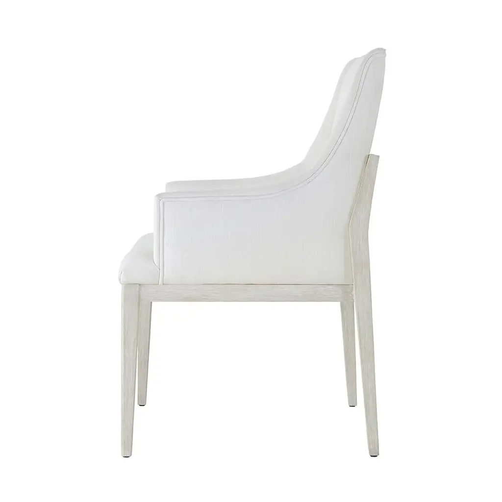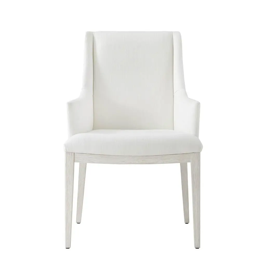 In our Sea Salt finish, the upholstered arm chair displays a comfortable upholstered seat with a fully upholstered back and arms. Raised on square tapered legs.Dimensions: 23.5" W x 25" D x 38" HSeat height: 19"Arm height: 25"