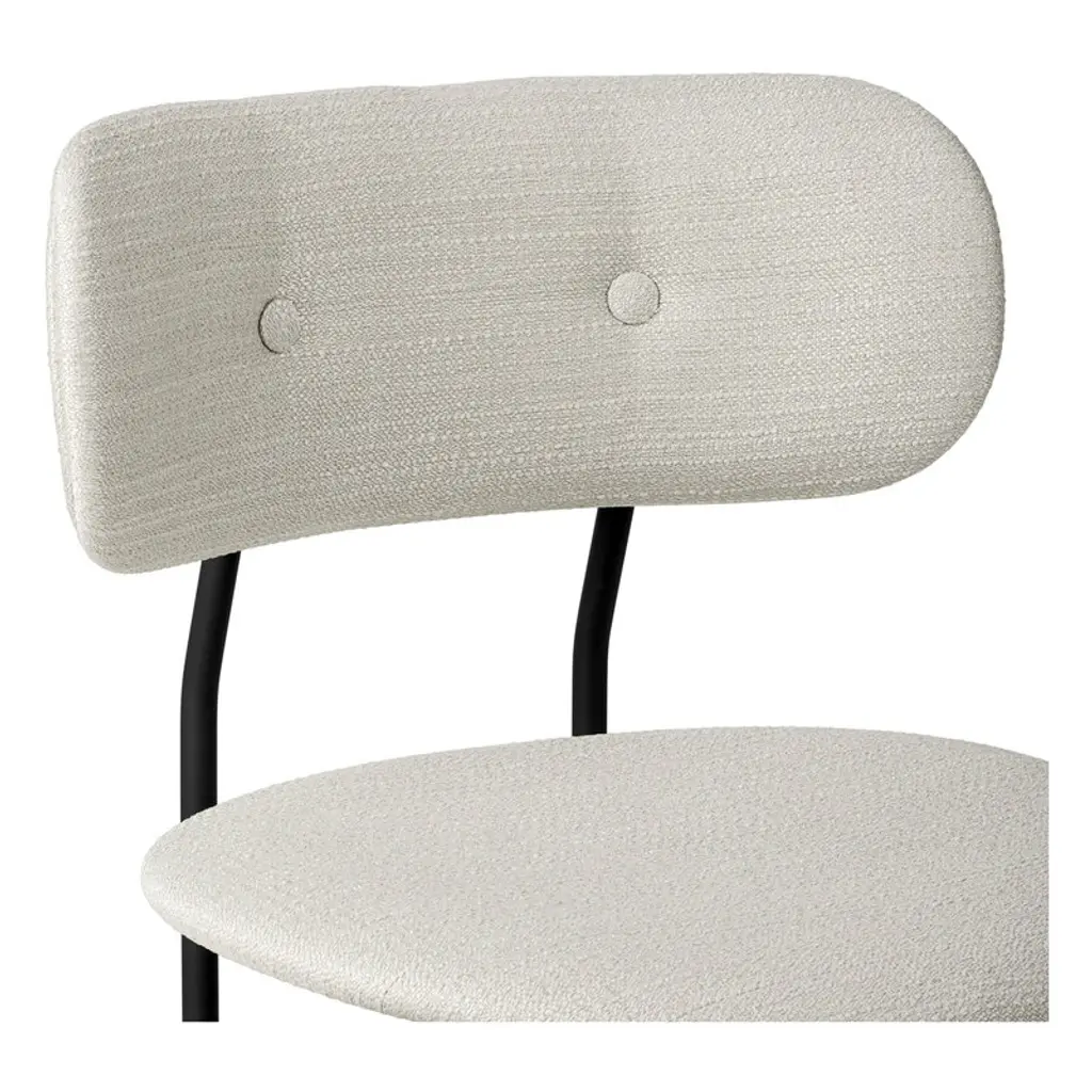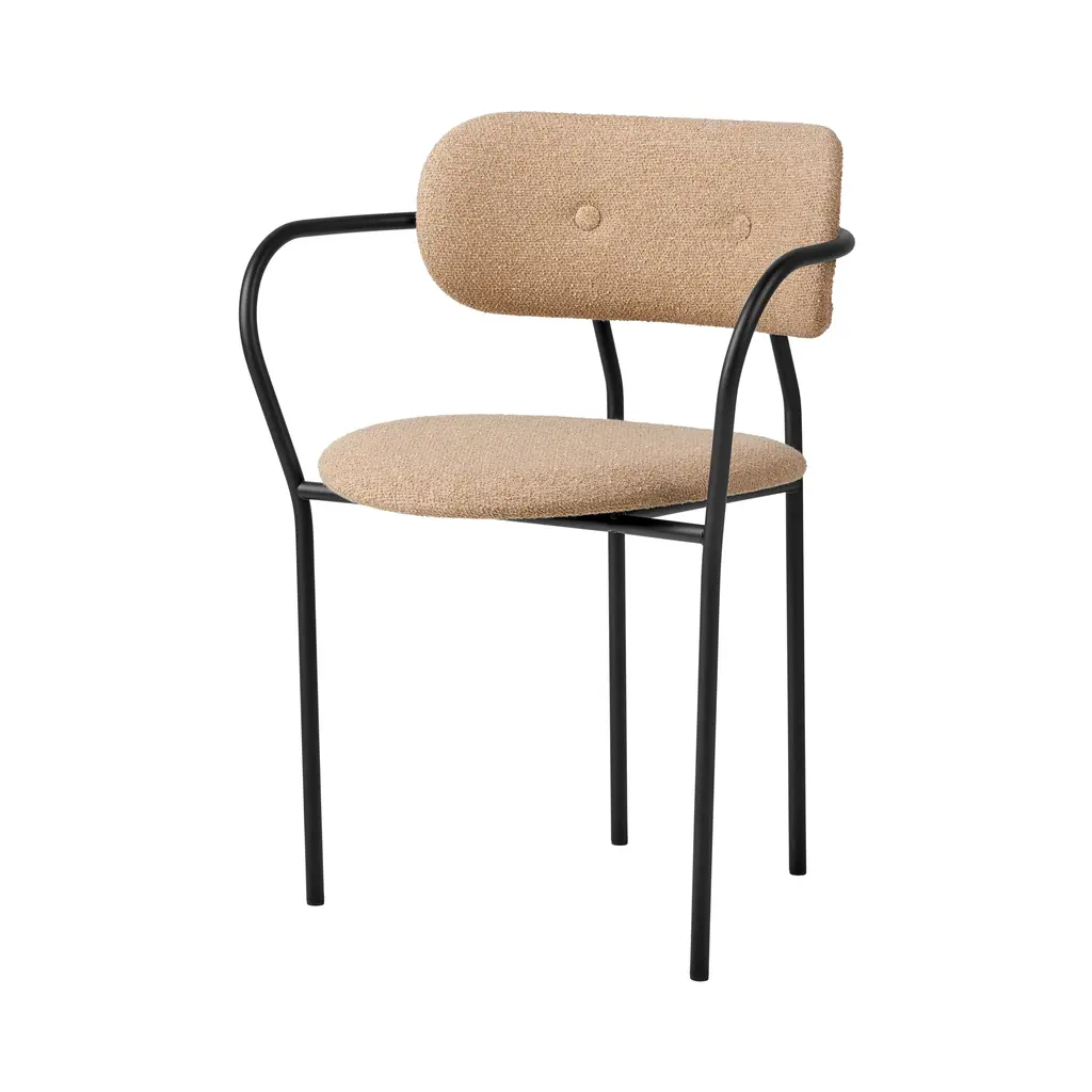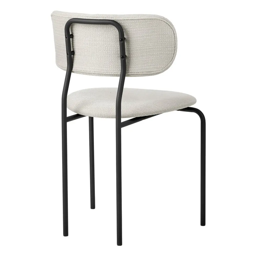 GUBI's Coco chair's design, courtesy of Oeo Studio, is rooted in maximal comfort. The simple yet distinctive form borrows from the industrial design language typical of Bauhaus, and soft curves and rounded shapes have been added for balance. The design process of the chair was driven by a desire to create a chair as beautiful as possible with as minimal use of materials as possible.