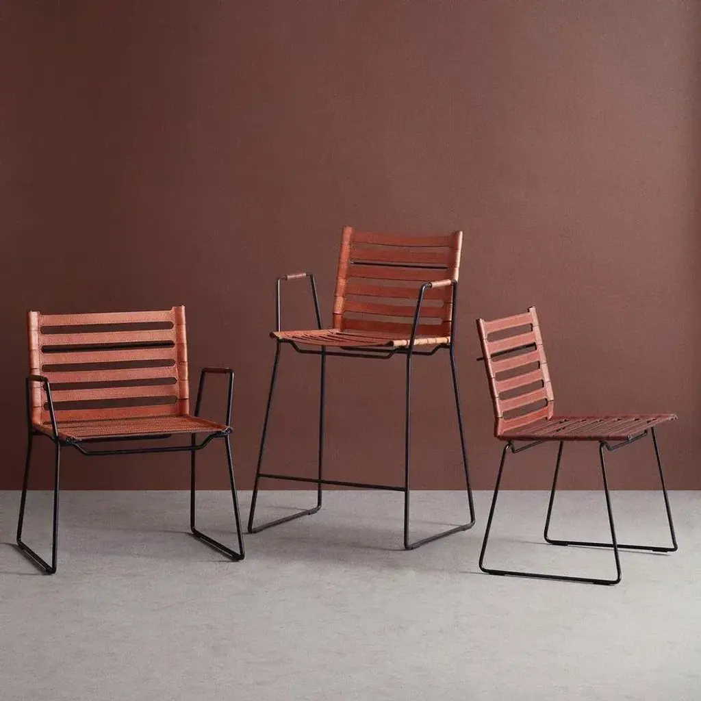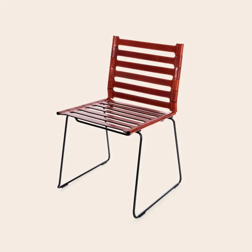 Cognac Strap Chair by OxDenmarq Dimensions: D 45 x W 45 x H 78.5 cm Materials: Leather, Black Powder Coated Steel