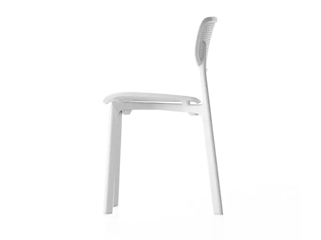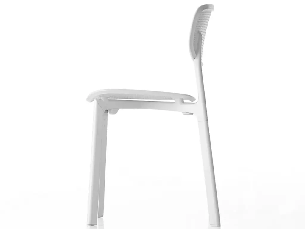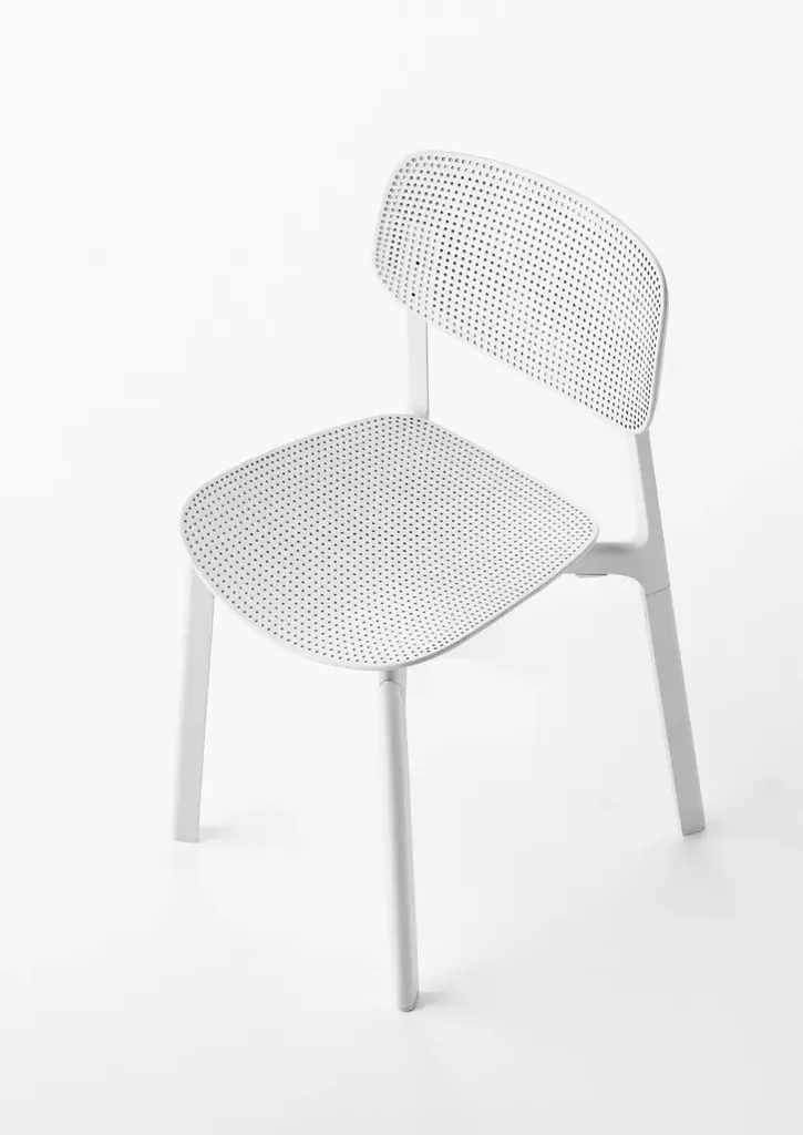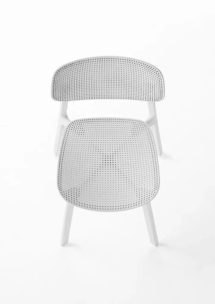 Colander translates the innovative creativity of Patrick Norguet, the French designer who focuses on the development of materials and technologies, in a chair. The light and unalterable painted aluminum structure supports the seat and backrest, available in three versions: the original version in injection-molded polypropylene with a perforated weave that recalls a colander, hence the name of the chair, and two new wooden versions curved and upholstered in fabric or leather. Stackable, single or two-colored, thanks to a wide choice of finishes, Colander can be used in the most varied indoor and outdoor home or community environments.