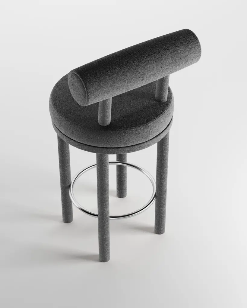 Collector Contemporary Modern Moca Bar Chair In Bouclé Charcoal By Studio Rig