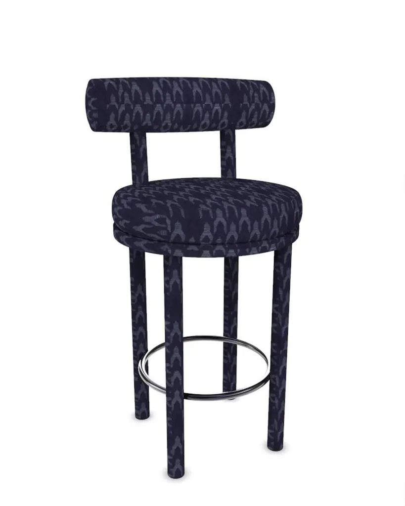 Collector Moca Bar Chair Fully Upholstered In Outdoor Blue Fabric By Studio Rig