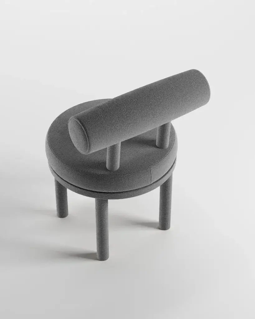 Collector Moca Chair in Boucle Charcoal by Studio Rig, in New conditions. Designed from 2000