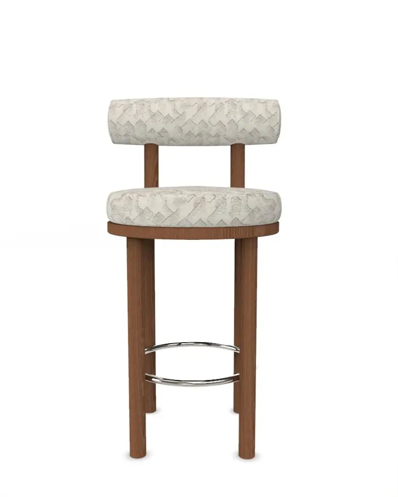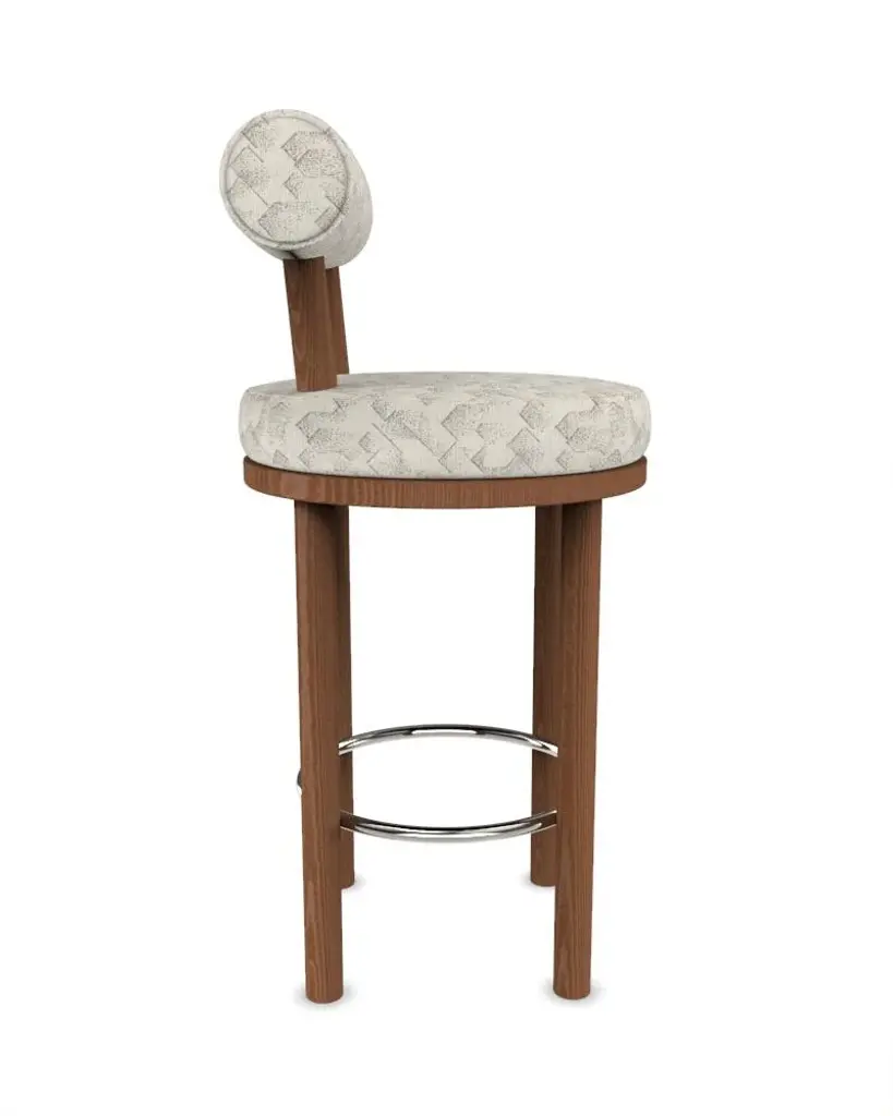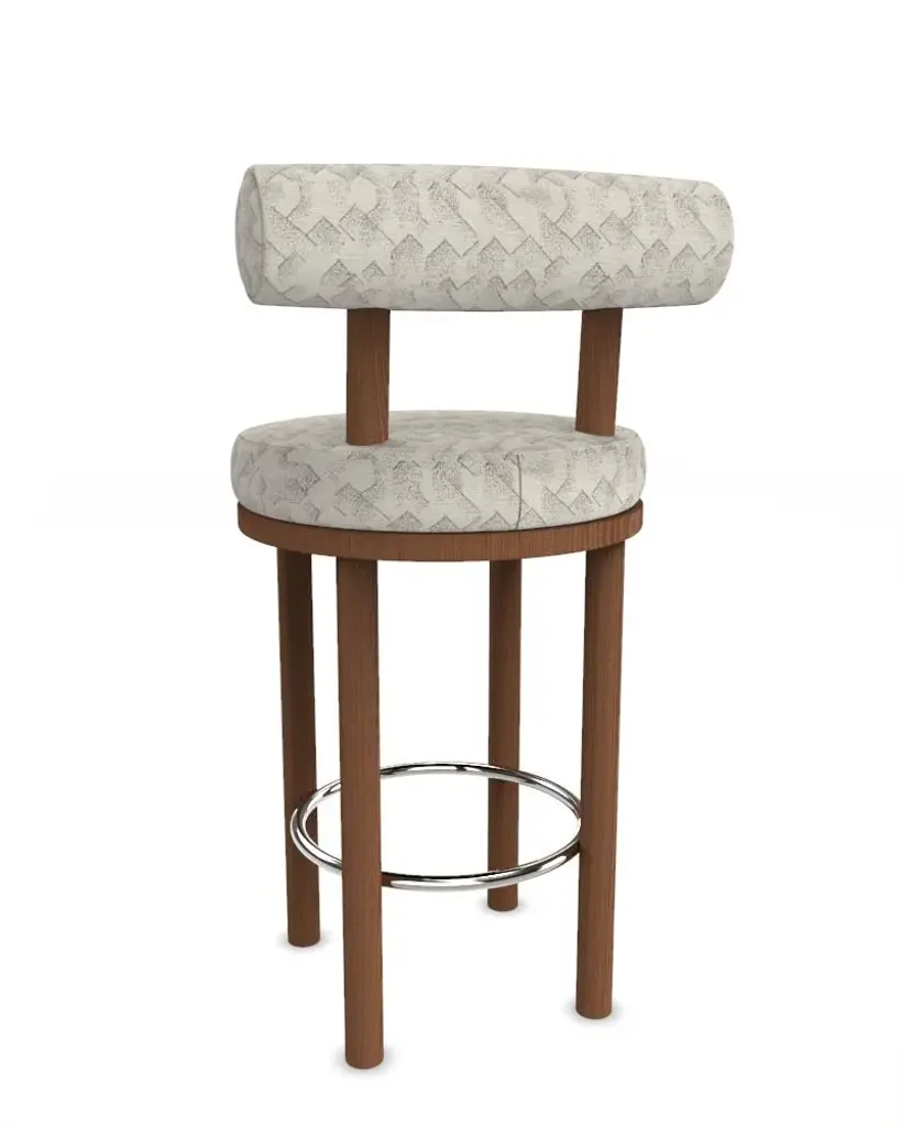 Contemporary modern moca bar chair in fabric by studio rig for collector studio a chair that mixes both modern and classical design approaches. designed to hug the body, durable and solid chair features a body structure produced in solid wood. dimensions w 50 cm 17.7” d 55 cm 20.5” h 102 cm 40.2” - seat height 64 cm or h 108 cm 44.1” - seat height 68 cm product features solid oak wood structure. Uphostered in fabric.