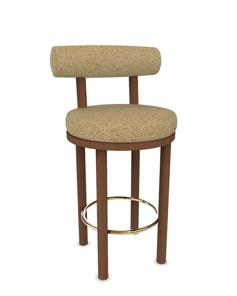 Contemporary modern moca bar chair in fabric by studio rig for collector studio a chair that mixes both modern and classical design approaches. designed to hug the body, durable and solid chair features a body structure produced in solid wood. dimensions w 50 cm 17.7” d 55 cm 20.5” h 102 cm 40.2” - seat height 64 cm or h 108 cm 44.1” - seat height 68 cm product features solid oak wood structure. Uphostered in fabric.