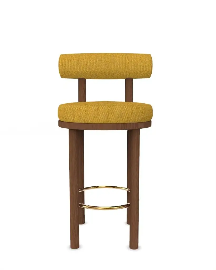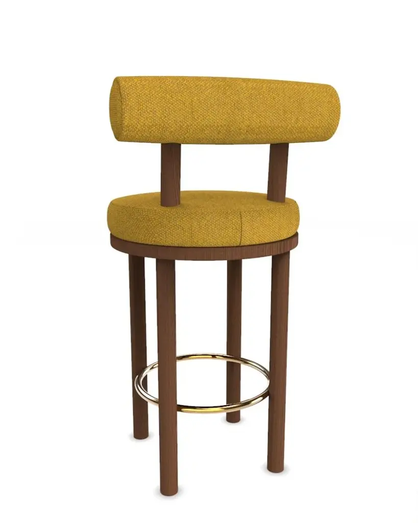 Contemporary modern moca bar chair in fabric by studio rig for collector studio a chair that mixes both modern and classical design approaches. designed to hug the body, durable and solid chair features a body structure produced in solid wood. dimensions w 50 cm 17.7” d 55 cm 20.5” h 102 cm 40.2” - seat height 64 cm or h 108 cm 44.1” - seat height 68 cm product features solid oak wood structure. Uphostered in fabric.