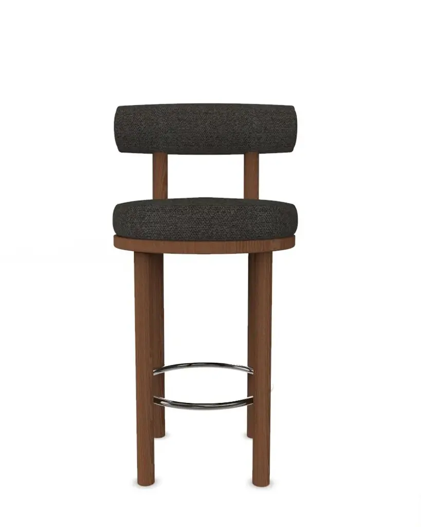 Contemporary modern moca bar chair in fabric by studio rig for collector studio a chair that mixes both modern and classical design approaches. designed to hug the body, durable and solid chair features a body structure produced in solid wood. dimensions w 50 cm 17.7” d 55 cm 20.5” h 102 cm 40.2” - seat height 64 cm or h 108 cm 44.1” - seat height 68 cm product features solid oak wood structure. Uphostered in fabric.
