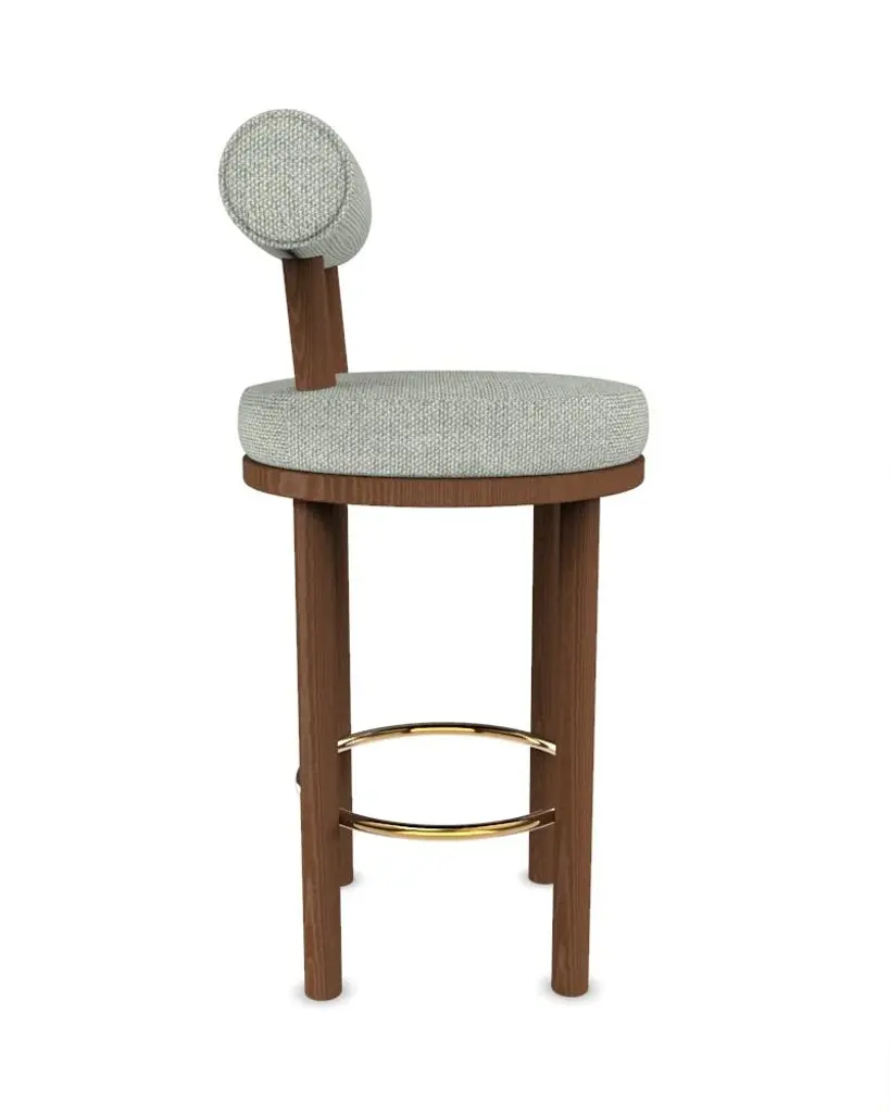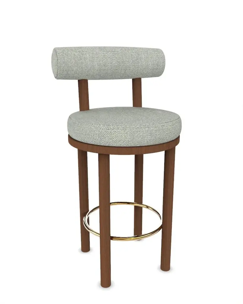 Contemporary modern moca bar chair in fabric by studio rig for collector studio a chair that mixes both modern and classical design approaches. designed to hug the body, durable and solid chair features a body structure produced in solid wood. dimensions w 50 cm 17.7” d 55 cm 20.5” h 102 cm 40.2” - seat height 64 cm or h 108 cm 44.1” - seat height 68 cm product features solid oak wood structure. Uphostered in fabric.