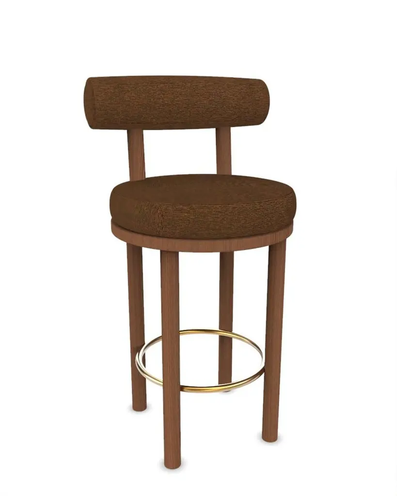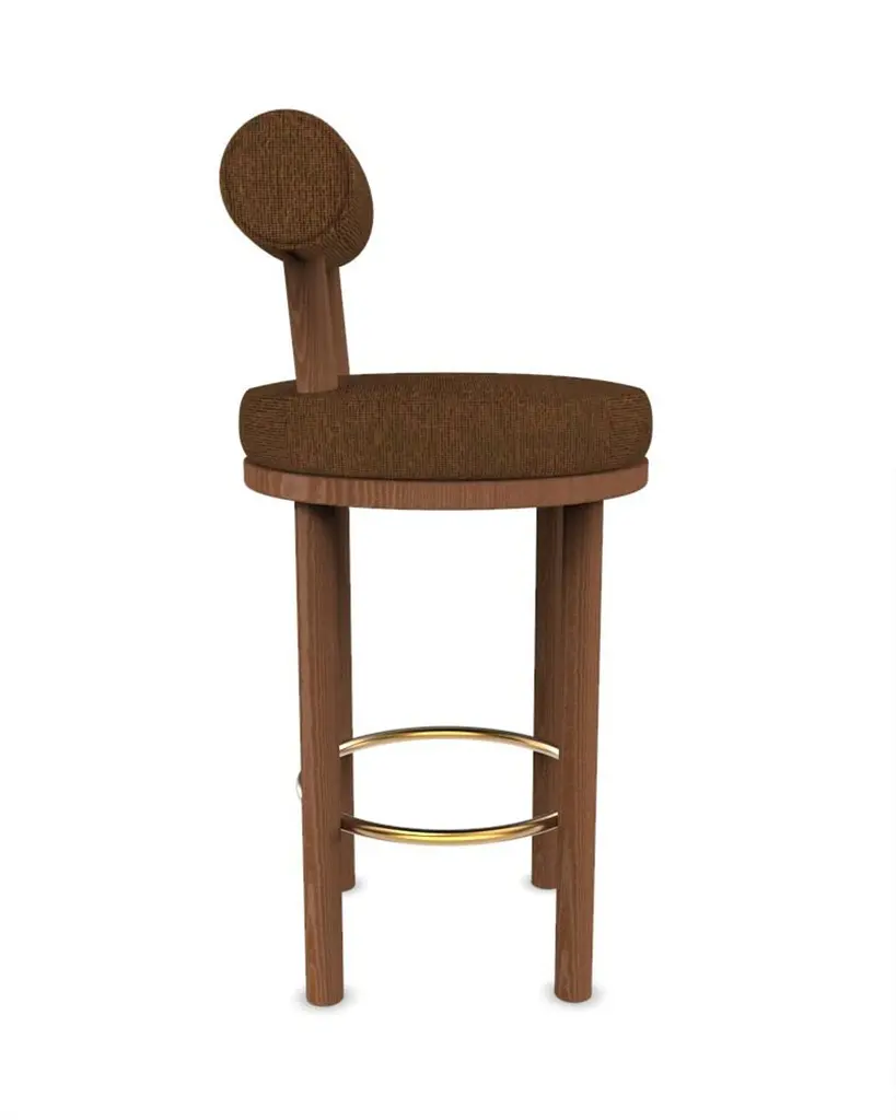 Contemporary Modern Moca Bar Chair in Dan - Chocolate Fabric and Smoked Oak by Studio Rig for Collector StudioA chair that mixes both modern and classical design approaches.Designed to hug the body, durable and solid chair features a body structure produced in solid wood.DimensionsW 45 cm 17,7”D 50 cm 19,6”H 98 cm 38,5”SH 65 cm 25,5”orH 108 cm 42,5”SH 75 cm 29,5”Product featuresSolid oak wood structure. Uphostered in fabric.Product optionsAvailable in all collector leathers and fabrics.Available in client’s own material.About collectorThe Collector brand was born and Portugal and aims to be part of daily life by fusing furniture to home routines and lifestyles. The company designs its pieces with the intention to embrace diverse styles and to blend in inside any contemporary setting.A wide range of product typologies are designed to work in diverse layers of importance. The result is a clean-lined furnishing collection that can easily be customised to work specifically and according to each unique need, reflecting traditional methods of furniture manufacturing with accurate industrial production methods. Collector strives to achieve the best quality possible by selecting the best materials and by the constant development of production processes and manufacturing partnerships.