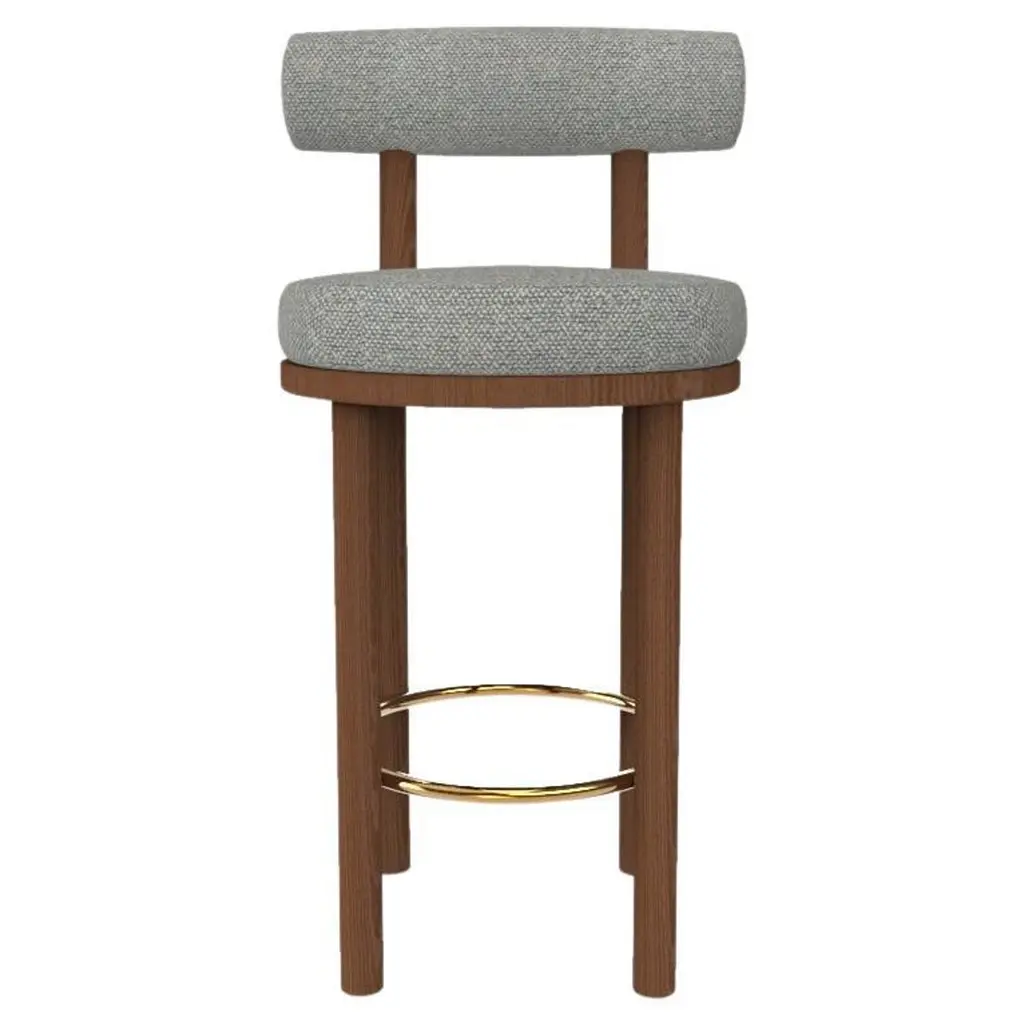 Contemporary Modern Moca Bar Chair in Safire 1 Fabric and Smoked Oak by Studio Rig for Collector StudioA chair that mixes both modern and classical design approaches.Designed to hug the body, durable and solid chair features a body structure produced in solid wood.DimensionsW 45 cm 17,7”D 50 cm 19,6”H 98 cm 38,5”SH 65 cm 25,5”orH 108 cm 42,5”SH 75 cm 29,5”Product featuresSolid oak wood structure. Uphostered in fabric.Product optionsAvailable in all collector leathers and fabrics.Available in client’s own material.About collectorThe Collector brand was born and Portugal and aims to be part of daily life by fusing furniture to home routines and lifestyles. The company designs its pieces with the intention to embrace diverse styles and to blend in inside any contemporary setting.A wide range of product typologies are designed to work in diverse layers of importance. The result is a clean-lined furnishing collection that can easily be customised to work specifically and according to each unique need, reflecting traditional methods of furniture manufacturing with accurate industrial production methods. Collector strives to achieve the best quality possible by selecting the best materials and by the constant development of production processes and manufacturing partnerships.