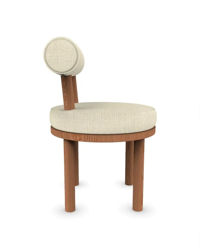 Collector Modern Moca Chair Upholstered in Famiglia 05 Fabric and Smoked Oak by Studio RigDIMENSIONS:W 51 cm 20”D 53 cm 21”H 86 cm 34”SH 49cm 19”A chair that mixes both modern and classical design approaches.Designed to hug the body, durable and solid chair features a body structure produced in solid wood.In Solid oak wood structure and upholstered in fabric.This piece can be customized to everyones taste.Made in Portugal, by CollectorAbout CollectorThe Collector brand was born and Portugal and aims to be part of daily life by fusing furniture to home routines and lifestyles. The company designs its pieces with the intention to embrace diverse styles and to blend in inside any contemporary setting.A wide range of product typologies are designed to work in diverse layers of importance. The result is a clean-lined furnishing collection that can easily be customised to work specifically and according to each unique need, reflecting traditional methods of furniture manufacturing with accurate Industrial Production methods. Collector strives to achieve the best quality possible by selecting the best materials and by the constant development of production processes and manufacturing partnerships.