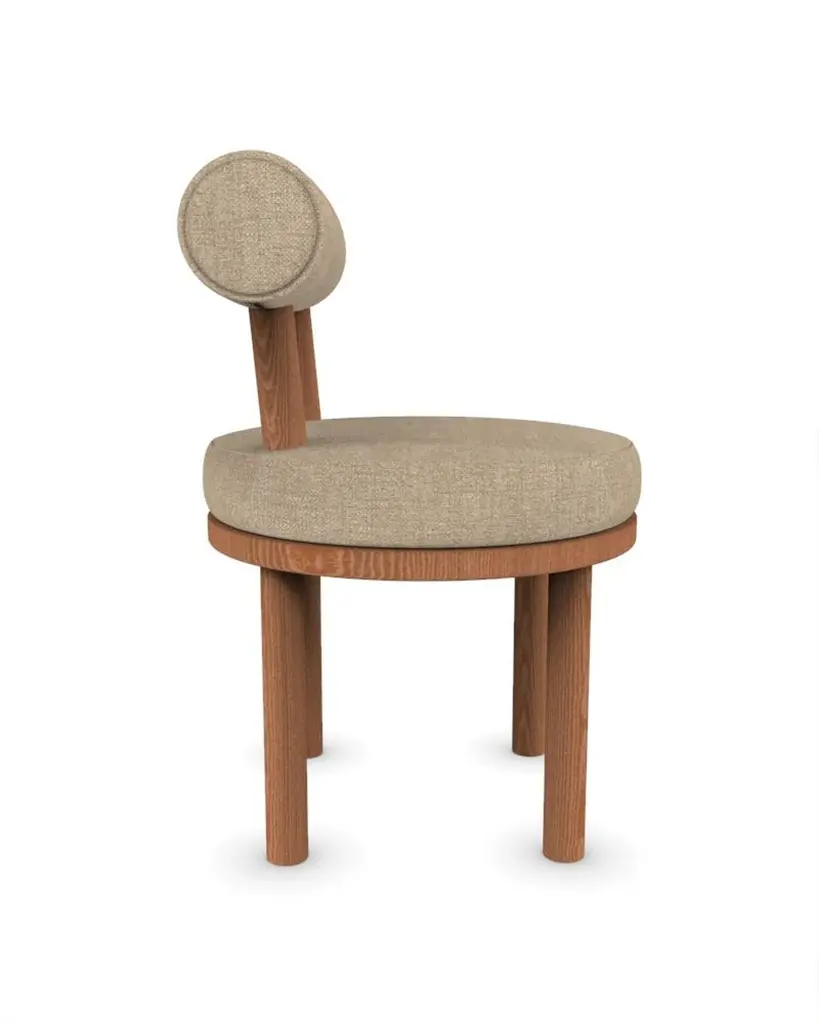 Collector Modern Moca Chair Upholstered in Famiglia 07 Fabric and Smoked Oak by Studio RigDIMENSIONS:W 51 cm 20”D 53 cm 21”H 86 cm 34”SH 49cm 19”A chair that mixes both modern and classical design approaches.Designed to hug the body, durable and solid chair features a body structure produced in solid wood.In Solid oak wood structure and upholstered in fabric.This piece can be customized to everyones taste.Made in Portugal, by CollectorAbout CollectorThe Collector brand was born and Portugal and aims to be part of daily life by fusing furniture to home routines and lifestyles. The company designs its pieces with the intention to embrace diverse styles and to blend in inside any contemporary setting.A wide range of product typologies are designed to work in diverse layers of importance. The result is a clean-lined furnishing collection that can easily be customised to work specifically and according to each unique need, reflecting traditional methods of furniture manufacturing with accurate Industrial Production methods. Collector strives to achieve the best quality possible by selecting the best materials and by the constant development of production processes and manufacturing partnerships.