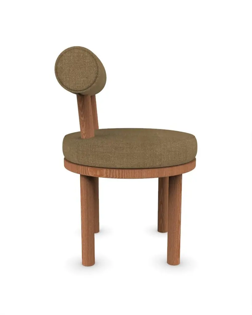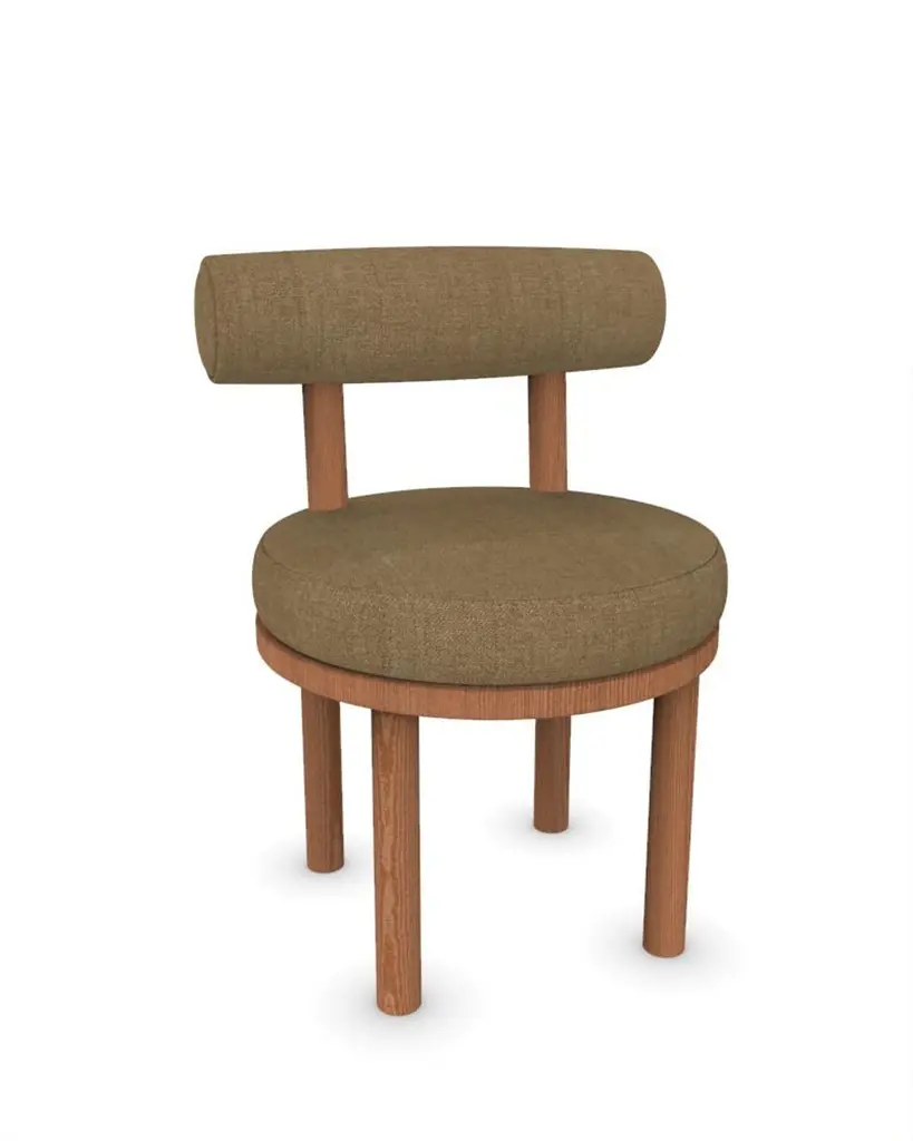Collector Modern Moca Chair Upholstered in Famiglia 10 Fabric and Smoked Oak by Studio RigDIMENSIONS:W 51 cm 20”D 53 cm 21”H 86 cm 34”SH 49cm 19”A chair that mixes both modern and classical design approaches.Designed to hug the body, durable and solid chair features a body structure produced in solid wood.In Solid oak wood structure and upholstered in fabric.This piece can be customized to everyones taste.Made in Portugal, by CollectorAbout CollectorThe Collector brand was born and Portugal and aims to be part of daily life by fusing furniture to home routines and lifestyles. The company designs its pieces with the intention to embrace diverse styles and to blend in inside any contemporary setting.A wide range of product typologies are designed to work in diverse layers of importance. The result is a clean-lined furnishing collection that can easily be customised to work specifically and according to each unique need, reflecting traditional methods of furniture manufacturing with accurate Industrial Production methods. Collector strives to achieve the best quality possible by selecting the best materials and by the constant development of production processes and manufacturing partnerships.