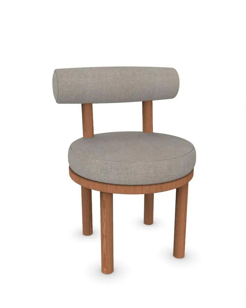 Collector Modern Moca Chair Upholstered in Famiglia 51 Fabric and Smoked Oak by Studio RigDIMENSIONS:W 51 cm 20”D 53 cm 21”H 86 cm 34”SH 49cm 19”A chair that mixes both modern and classical design approaches.Designed to hug the body, durable and solid chair features a body structure produced in solid wood.In Solid oak wood structure and upholstered in fabric.This piece can be customized to everyones taste.Made in Portugal, by CollectorAbout CollectorThe Collector brand was born and Portugal and aims to be part of daily life by fusing furniture to home routines and lifestyles. The company designs its pieces with the intention to embrace diverse styles and to blend in inside any contemporary setting.A wide range of product typologies are designed to work in diverse layers of importance. The result is a clean-lined furnishing collection that can easily be customised to work specifically and according to each unique need, reflecting traditional methods of furniture manufacturing with accurate Industrial Production methods. Collector strives to achieve the best quality possible by selecting the best materials and by the constant development of production processes and manufacturing partnerships.