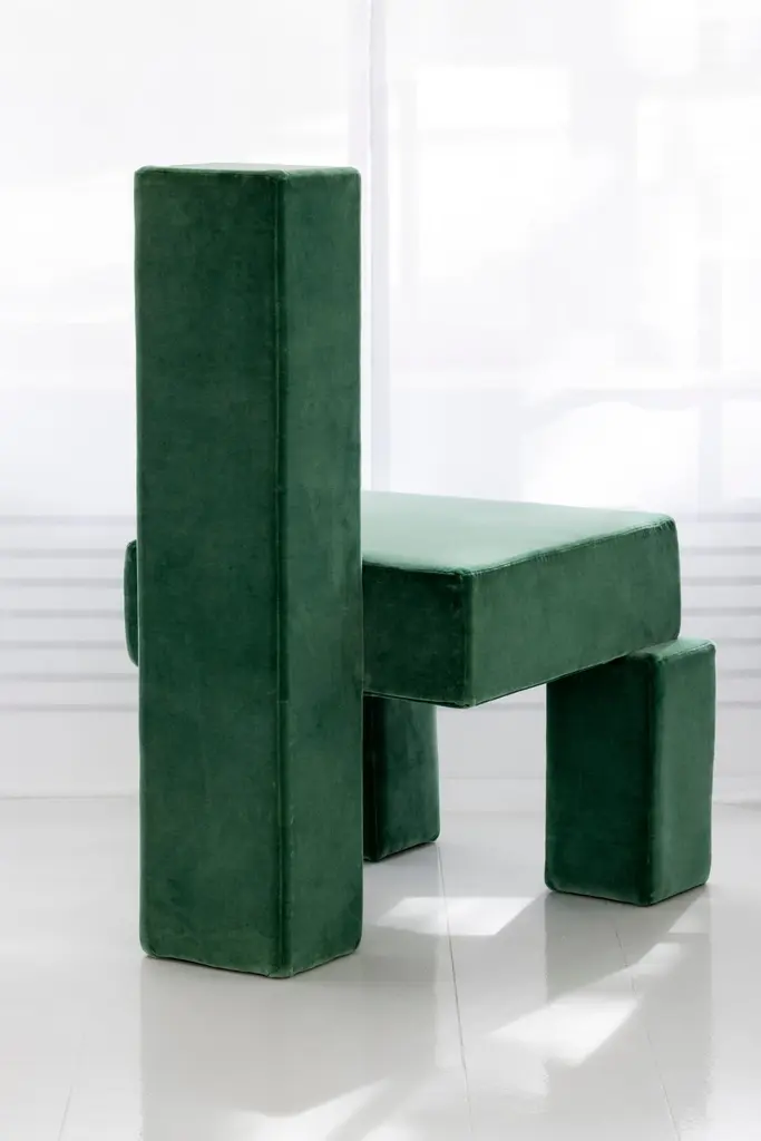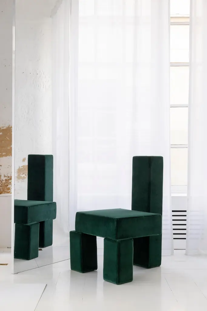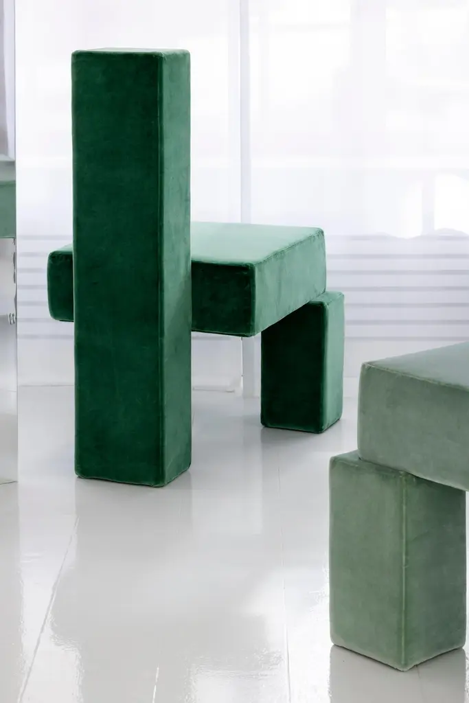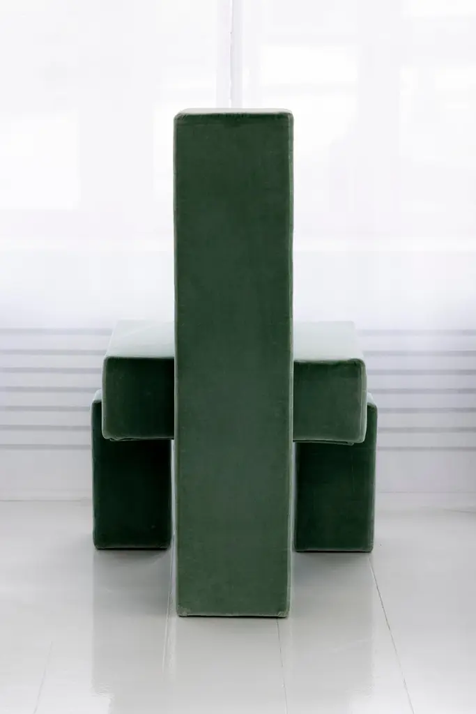 Licitra chair by Pietro FranceschiniDimensions: W 62 x D 71 x H 95 cmMaterials: Velvet (by Métaphores).Somebody once said that simplicity is the essence of happiness. So I dedicated this work to my friend Caterina Licitra.Licitra Chair challenges the ability to simplify, eliminating the unnecessary so that the necessary can speak. The hardedged and bold silhouette speaks a clean language made of a few primitive volumes that firmly fit together.Pietro FranceschiniArchitect // designerPietro Franceschini is an architect and designer based in New York and Florence. He was educated in Italy, Portugal and United States. After receiving his B.Arch cum laude from Università degli Studi di Firenze and his M.S.Arch with 1st class honour from Pratt Institute, he collaborated among others with Leeser Architecture in Brooklyn, Claudio Nardi in Florence, Laisné Roussel in Paris and Carlo Ratti Associati in New York. His latest project - PFStudio - was born as an interior and furniture design practice.