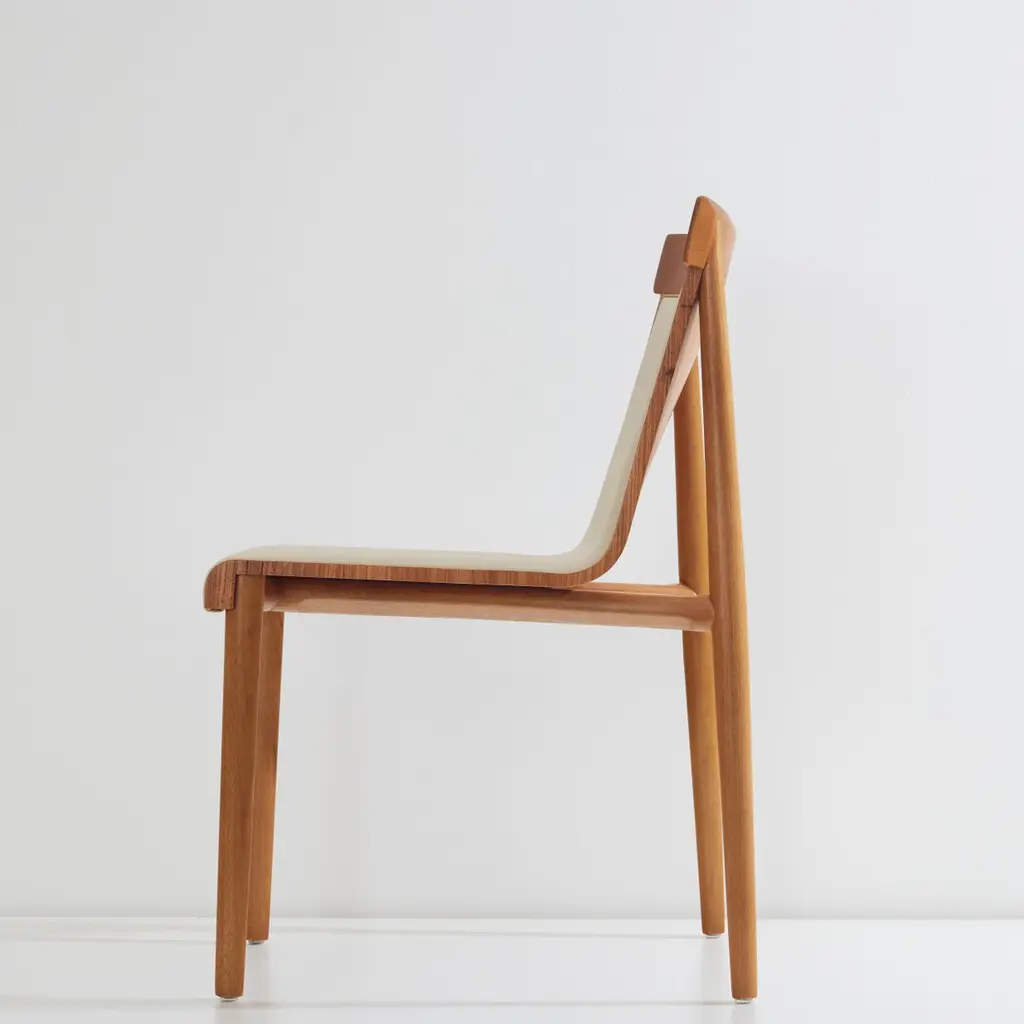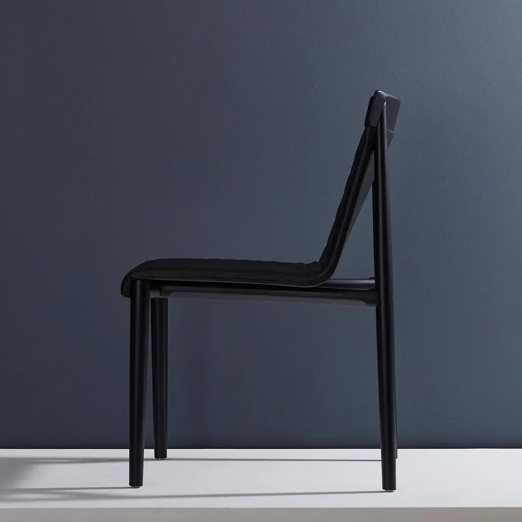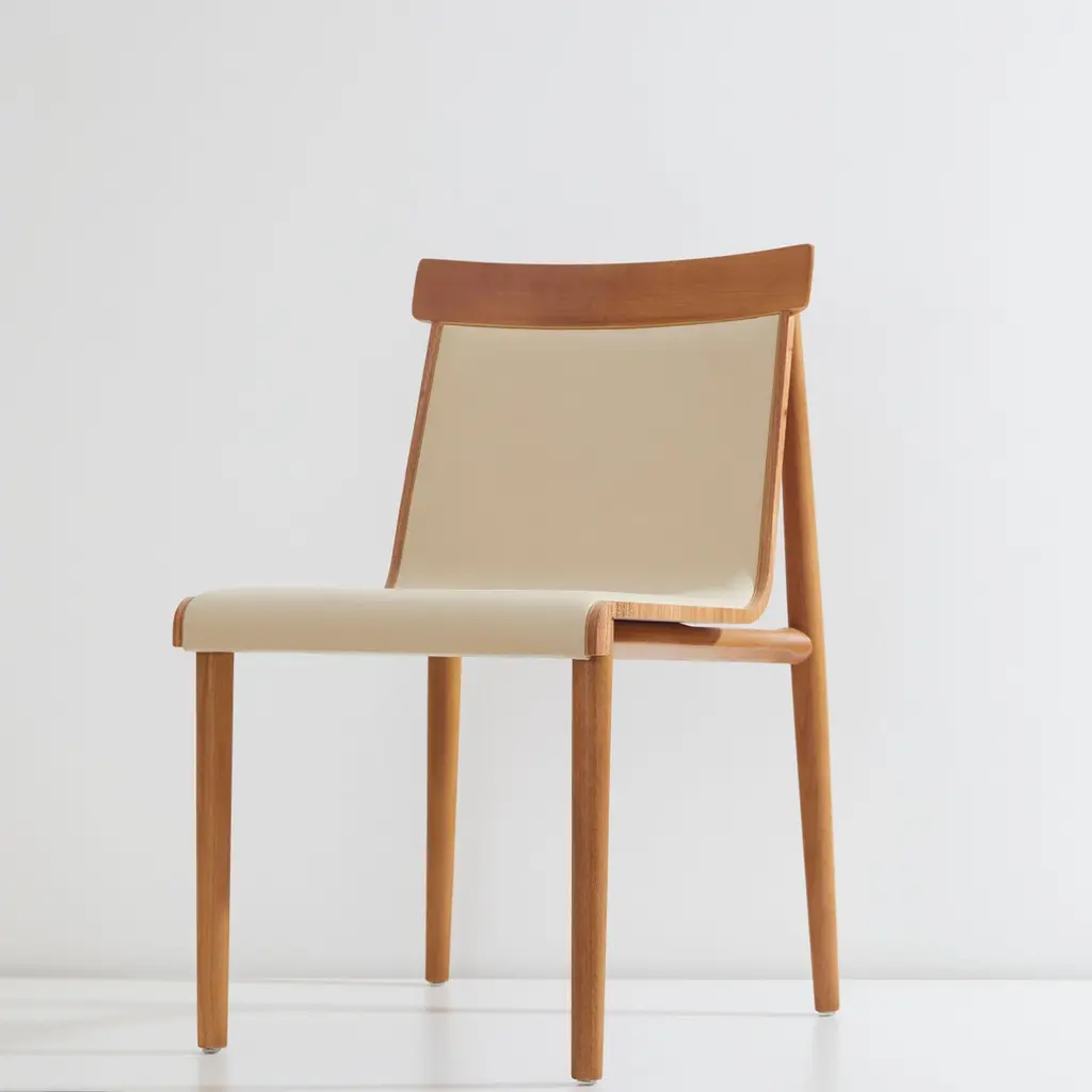 Contemporary Chair In Solid Wood, Upholstered In Leather Or Textiles