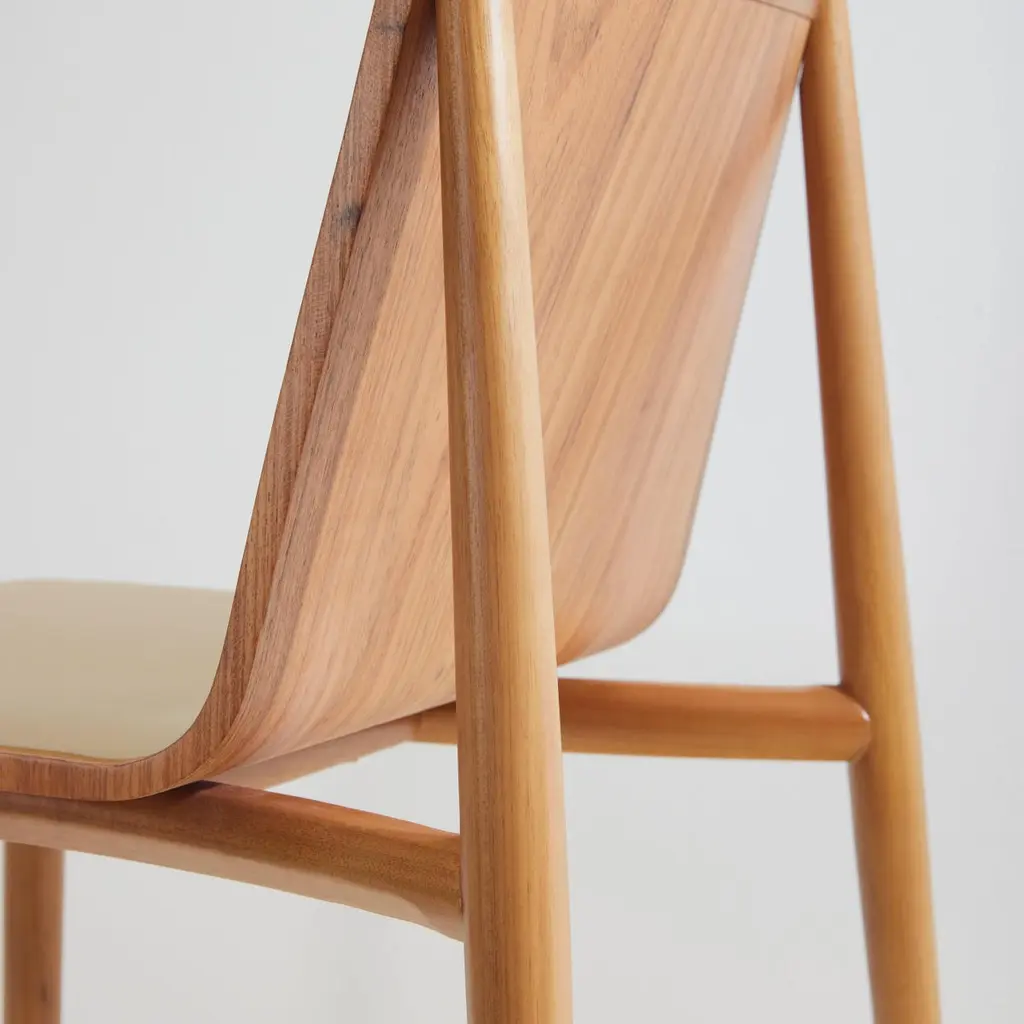 Dry chair collection.The Dry chair concept is to work in a mixture of distinct references resulting in a modern classic in a dance between the retro and the modern. A heavy and in depth wood work is put to the structure to create interesting details and variable section thicknesses that donate a delicate outcome, where the forms transform along the well defined lines, a chair that is designed with a clinical eye to be comfortable, eye catching and coherent. In the proportions we have a the intention of have a drawing that fits the Leonardo Da Vinci “Golden section” internally and cut this shapes to the exterior portion of the main block, to characterize the collection in a graphic way. The structure made from solid wood, back and seat are upholstered, in the back portion of the back is possible to choose a natural wood finish or continue with the same material as the textile. One of the focus is the versatility, with versions with or without arms. Expect a stunning, elegant chair, designed with passion. Listing illustrates the natural upholstered back, no arms. We use only high quality, premium woods, the, tonality and veins drawing vary, been a living material. Lead time is usually 20-45 days. All shipping’s are insured, we follow all orders closely keeping our clients informed of every update on the order. Client's own material or leather is accepted, the buyer is responsible for the COM material shipping and extra costs involved in the logistics, been local taxes and duties, if this solution is selected.