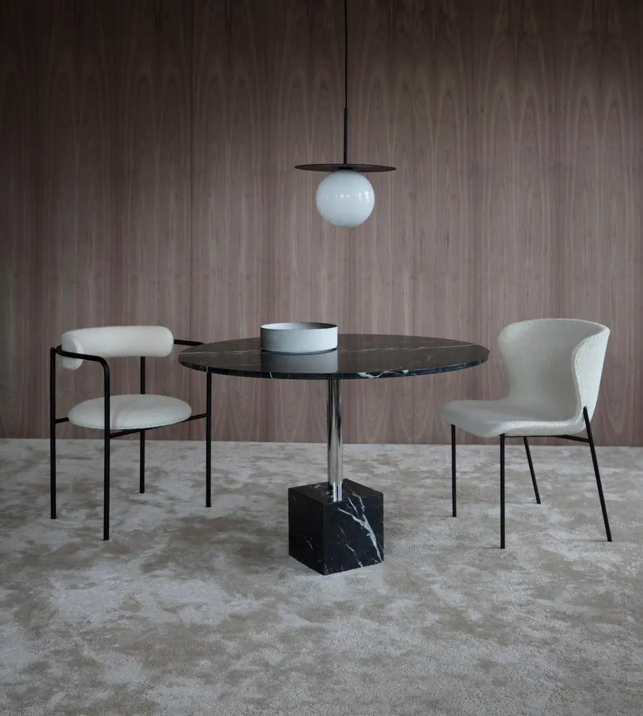 The 'Pipe' Chair designed by Ida L. Hildebrand for Friends & FoundersDimensions:H. 81 x W. 59 x D. 55 cmH. 31,89 x W. 23,23 x D. 21,65"Model shown in main picture:- Seat Fabric: Dedar, Beige Wool, Xylophone 002- Legs Finish: Black frame---Contemporary design studio Friends & Founders was founded in 2003 by Ida Linea and Rasmus Hilderbrand in Copenhagen, Denmark.For this couple, designing and creating is a ”geometrical performance act”. The lines and shapes are sleek and pure; often organic. And sometimes, it contrasts with the masculinity of the materials used, as marble or metal. The creations signed by Friends & Founders may look simple. In reality, the pieces are a perfect balance between functional comfort and elegance of lines and design.