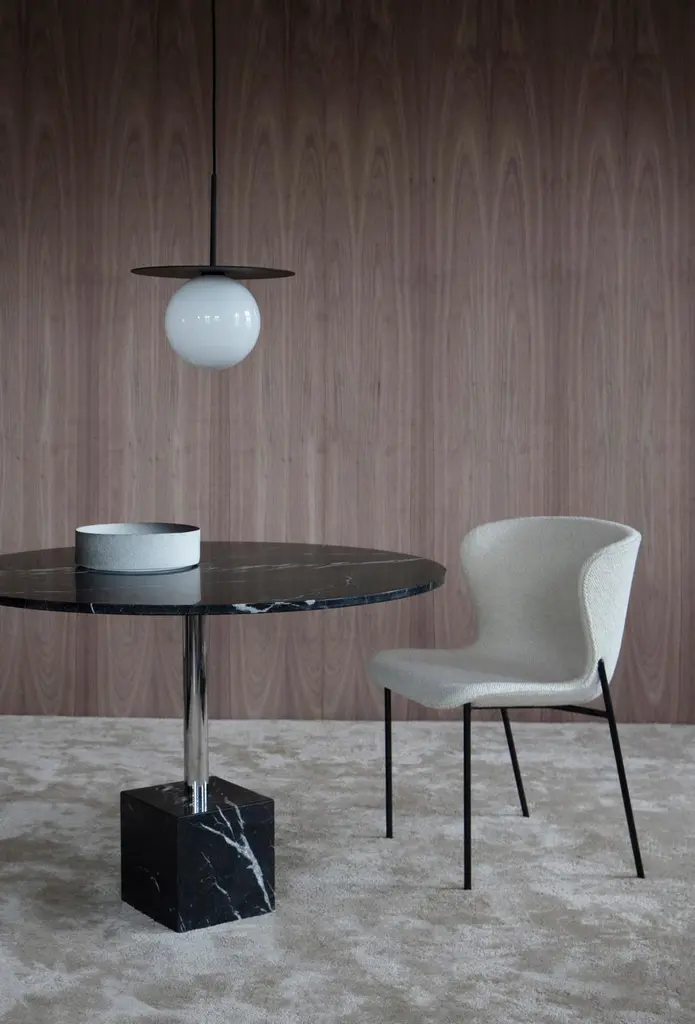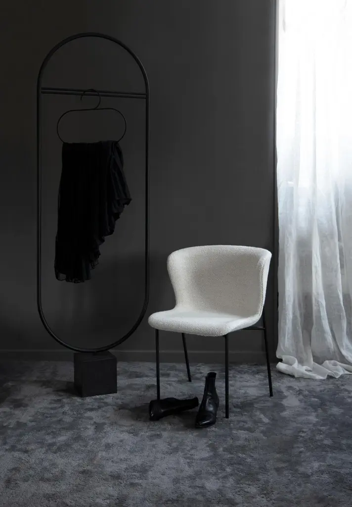 Contemporary Chair 'Pipe' Black Frame, Beige Wool, Xylophone