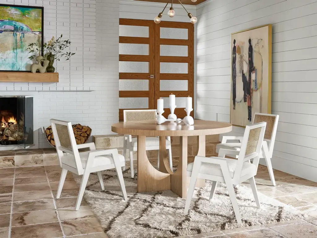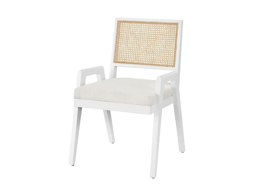 The Cane Back Arm Chair brings subtle bohemian vibes to home interiors with its striking pairing of materials, including a woven cane back, a crisp white body and a plush upholstered seat cushion. Assembly Required? Yes