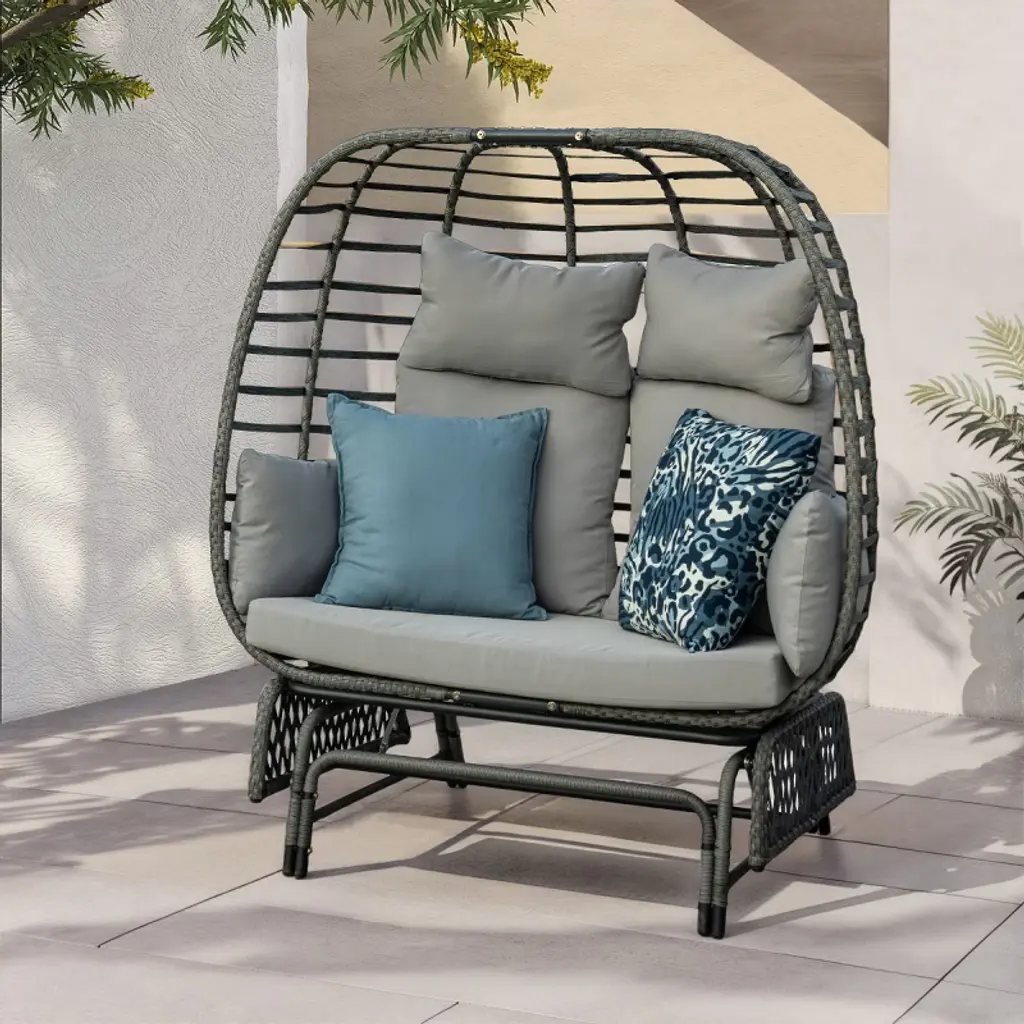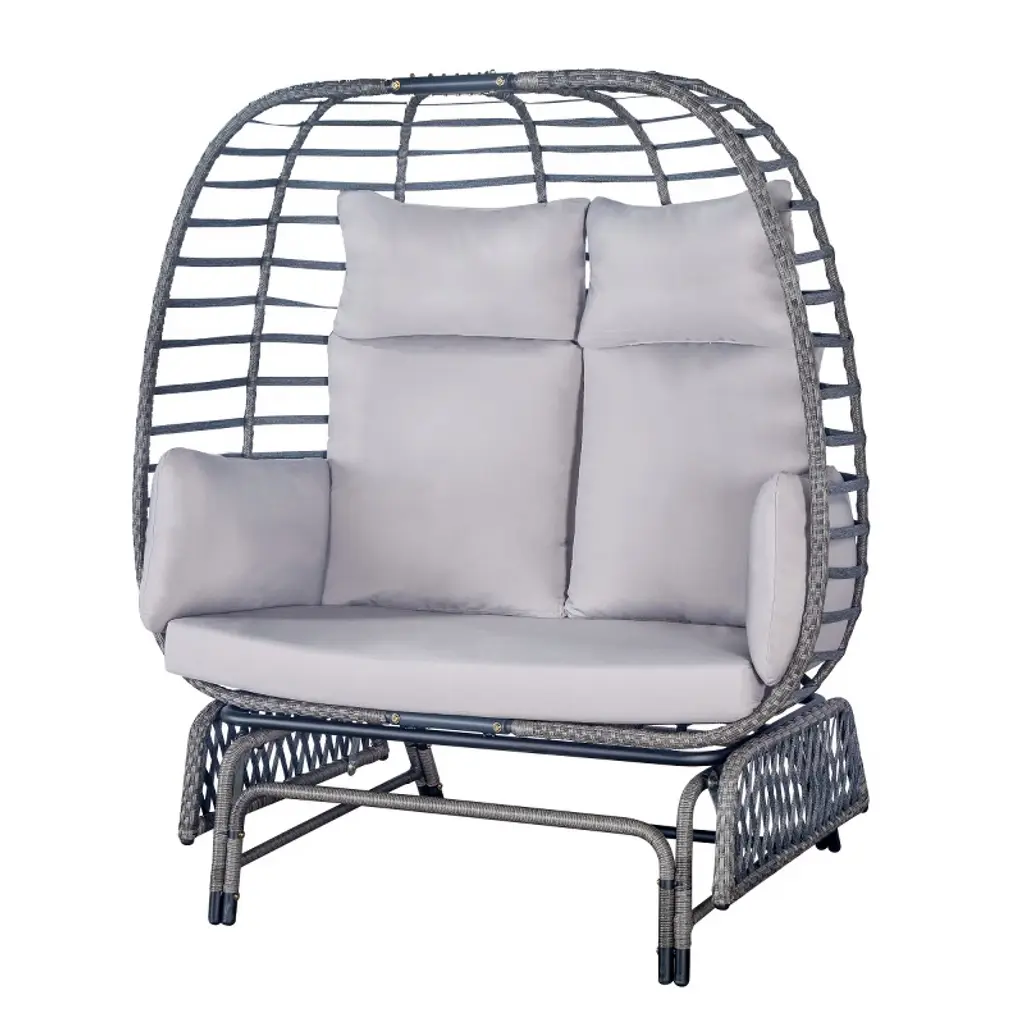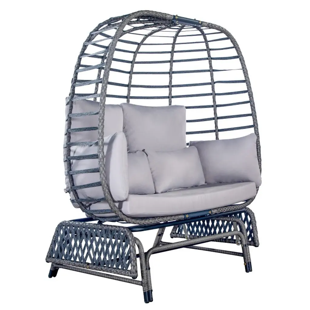 Coolbibila 2 Person Patio Swing Egg Chair,polyethylene Rattan Garden Lounge Egg Chair,brown Gray Fabric Upholstered Egg Chair With Rocking Glide Frame