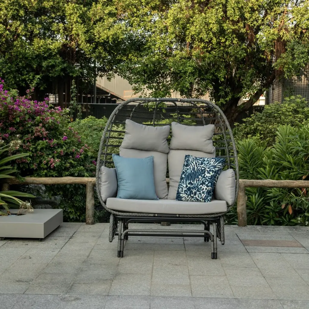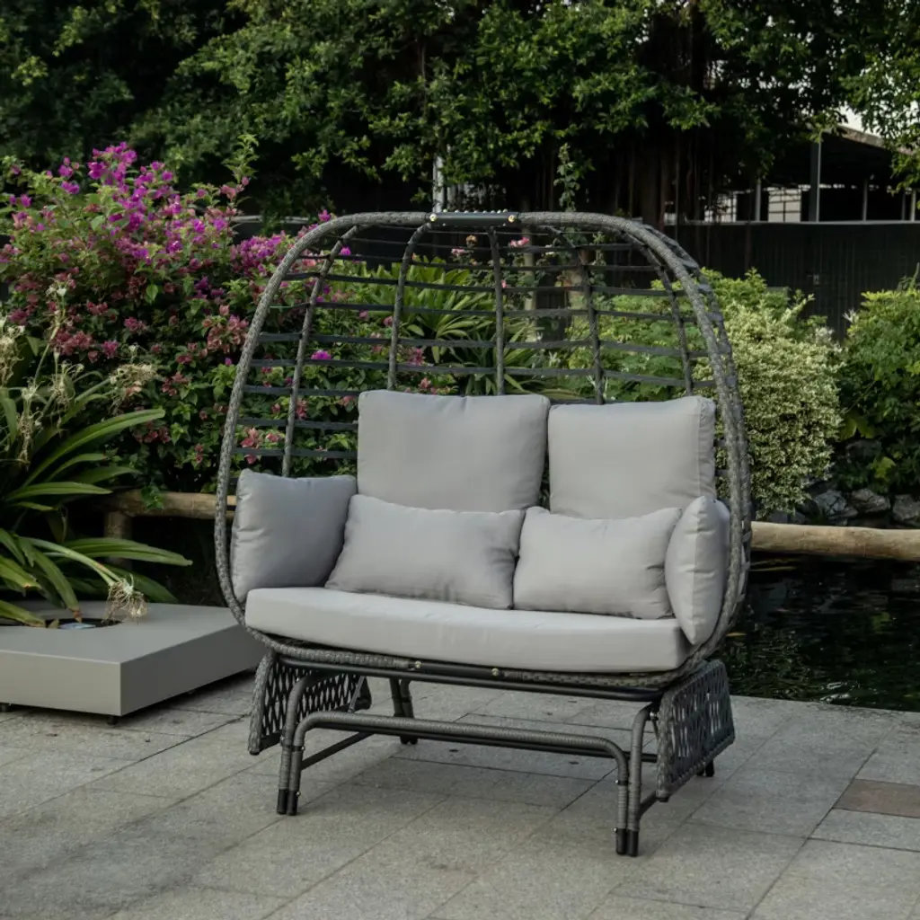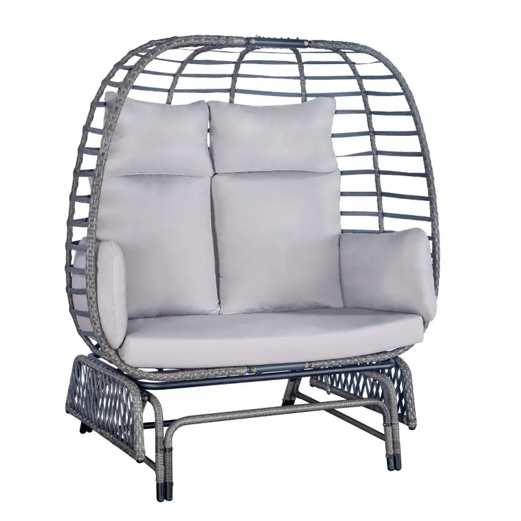 Coolbibila 2 Person Patio Swing Egg Chair,polyethylene Rattan Garden Lounge Egg Chair,brown Gray Fabric Upholstered Egg Chair With Rocking Glide Frame