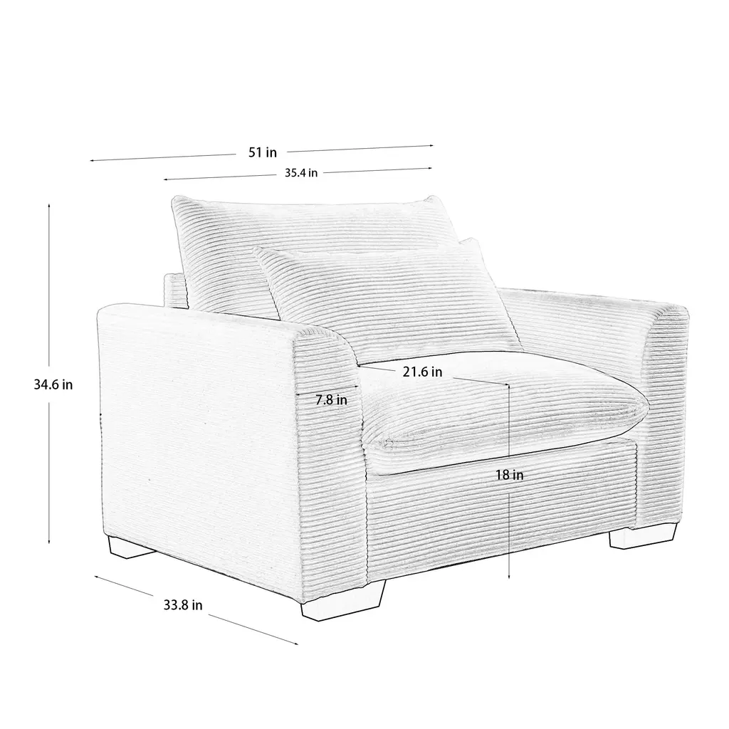 Corduroy Deep Seat Single Sofa Accent Chair,1 Seat Sophisticated Fabric Single Sofa - Green