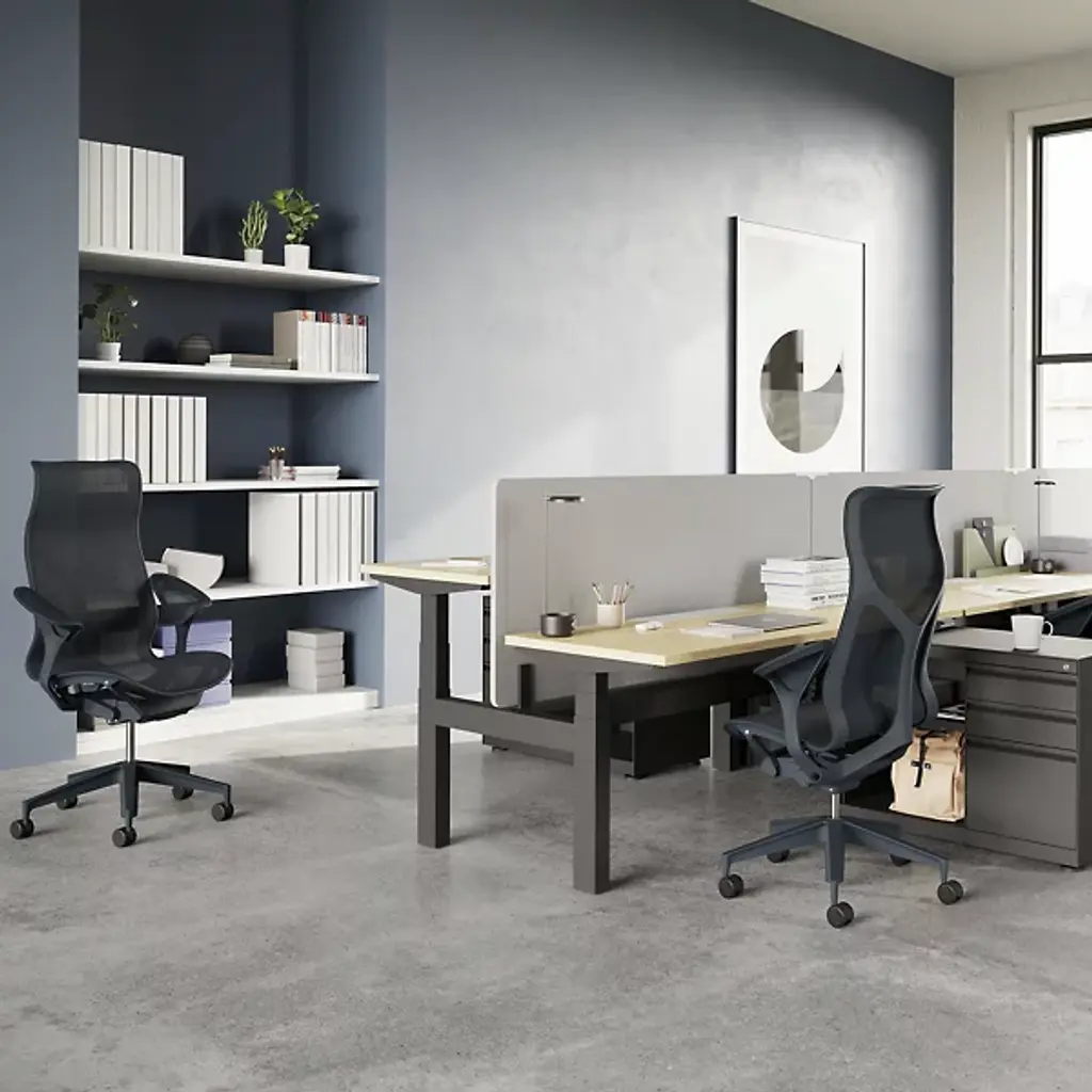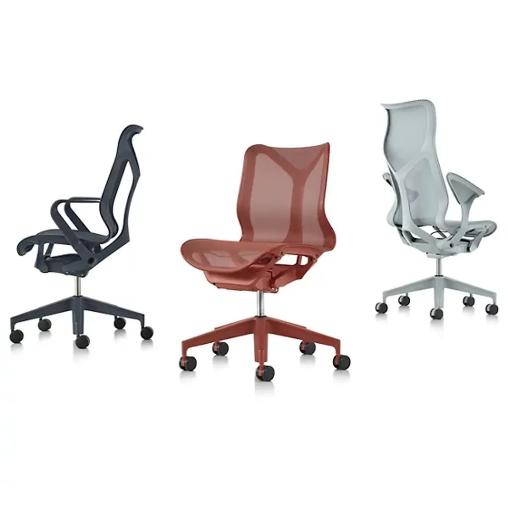 Take a seat in the Cosm High Back Chair with leaf Arms, its simplistic aesthetic and ergonomic design allows any user to have the most comfortable experience. Once seated you won't even realize that you're seated because of its easy-natured design and proficient support system. Thanks to its auto-harmonic tilt that self-adjusts and gives each user overall body stabilization from hips to ankles. Cosm has a high back which is excellent for total back support and upper-thoracic support, also features leaf arms that has plenty of elbow room which help getting in and out of the work chair so much easier. This eco-friendly chair is also 95 percent recyclable which was designed for the environment. Comes in a range of bold and neutral hues.