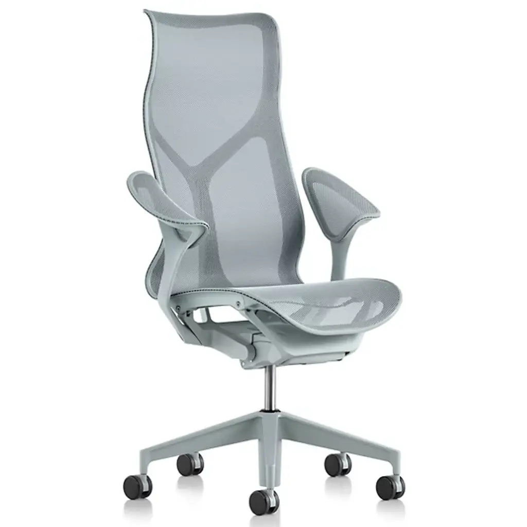 Take a seat in the Cosm High Back Chair with leaf Arms, its simplistic aesthetic and ergonomic design allows any user to have the most comfortable experience. Once seated you won't even realize that you're seated because of its easy-natured design and proficient support system. Thanks to its auto-harmonic tilt that self-adjusts and gives each user overall body stabilization from hips to ankles. Cosm has a high back which is excellent for total back support and upper-thoracic support, also features leaf arms that has plenty of elbow room which help getting in and out of the work chair so much easier. This eco-friendly chair is also 95 percent recyclable which was designed for the environment. Comes in a range of bold and neutral hues.