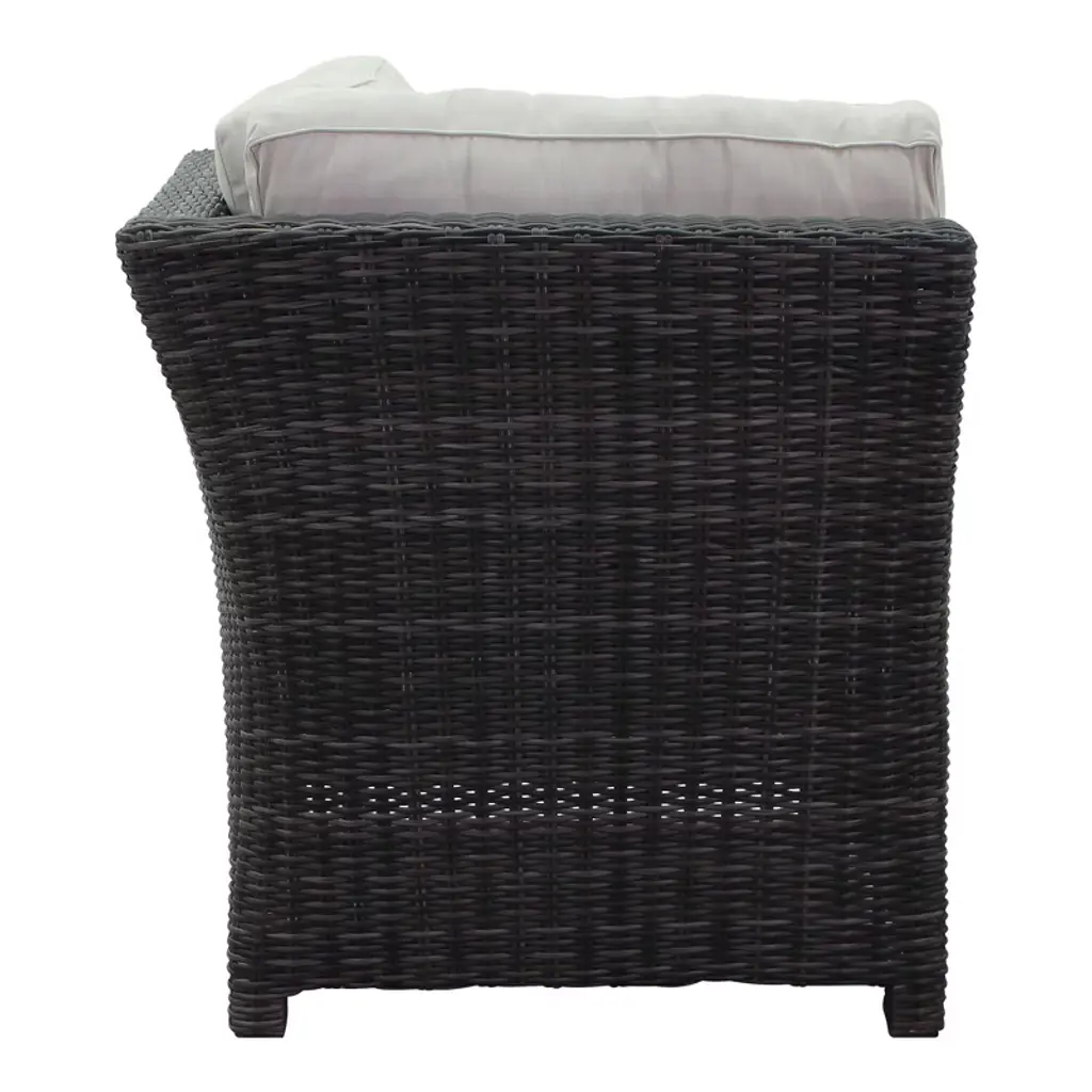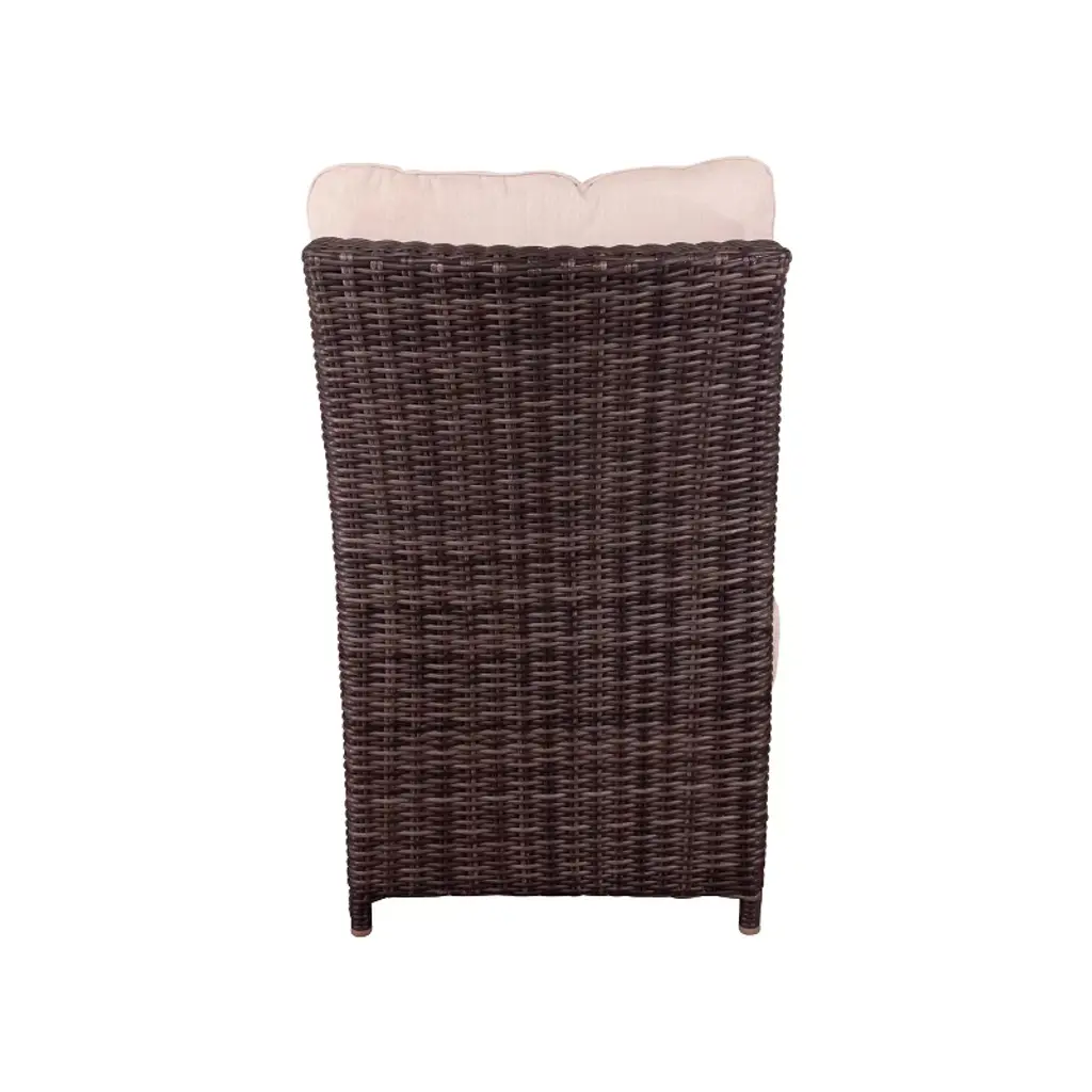 Spring into Summer with Cheshire Chow conversation seating with optional Chow Height Dining table. Hand woven synthetic wicker over an all aluminum frame makes this sturdy for the whole family. The centerpiece of this set is the generously sized woven and glass top table suitable for dining or relaxing with a card game or friends. The reclining function allows you to kick-back. The small cushioned stools are great for ottomans or additional seating and can be pushed under the table for space saving if needed. Available in traditional sofa seating or as a sectional. Weather resistant fabric high performance solution dyed acrylic fabric. One Year Limited Manufacturer Warranty