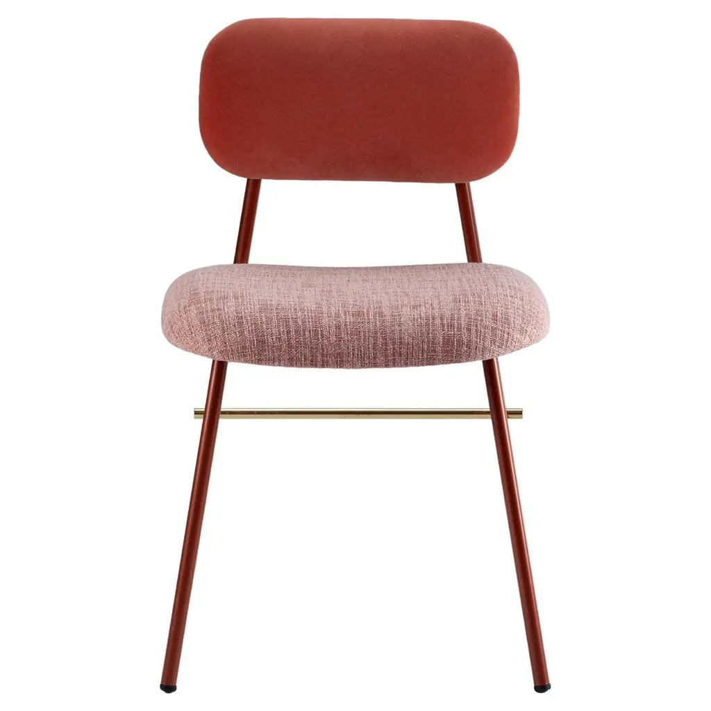 The Cozy Chair from Connubia provides a casual modern enhancement for inside spaces. A simple set of structures that play well with a range of styles, each seat rises from a tubular metal frame with four legs that curve up to an X-shaped top, securing a padded seat, while two rods sweep upward to support a curving, plushily-upholstered chair back. The seat and back offer stately support, while a spill-resistant surface offers enhanced durability with a refined presentation.