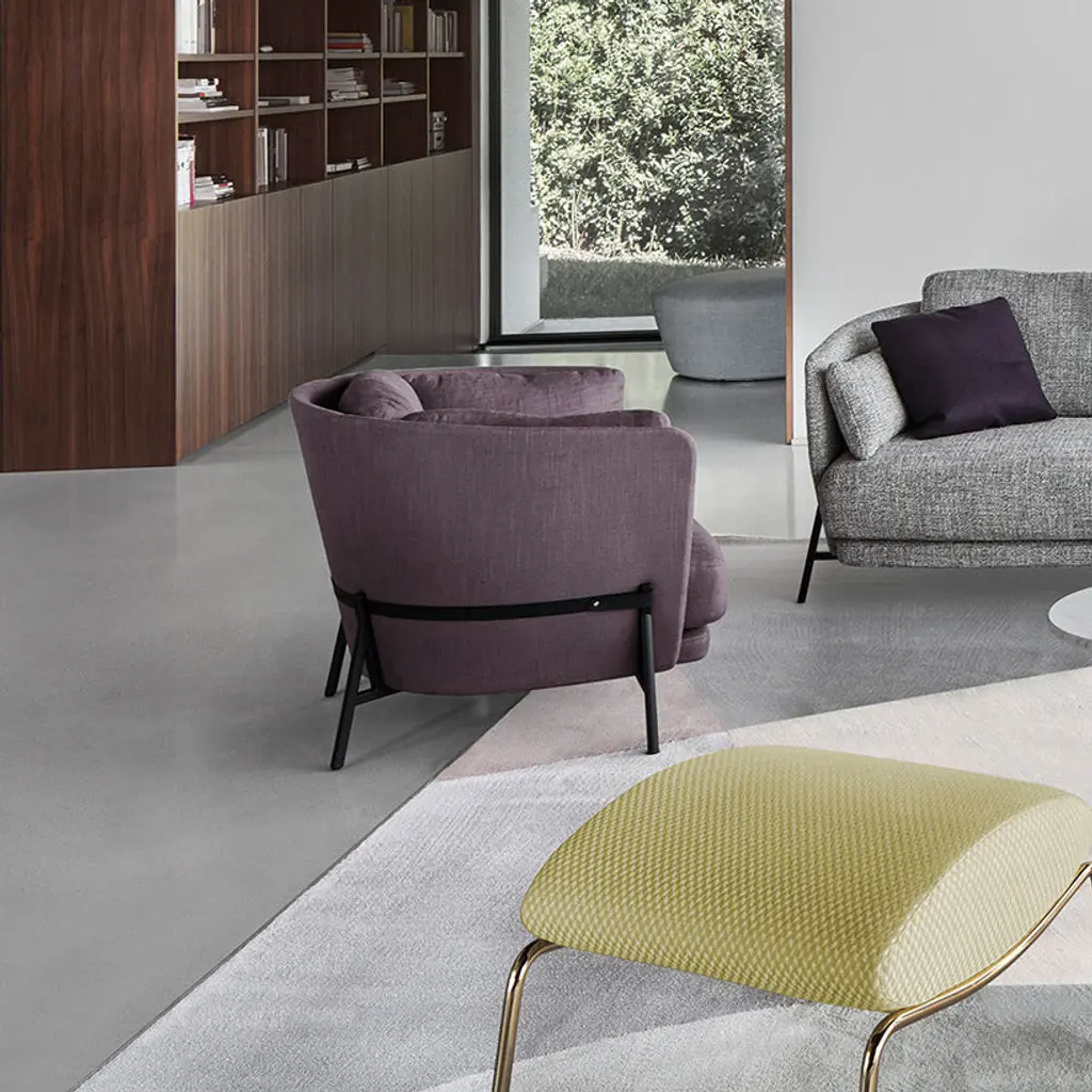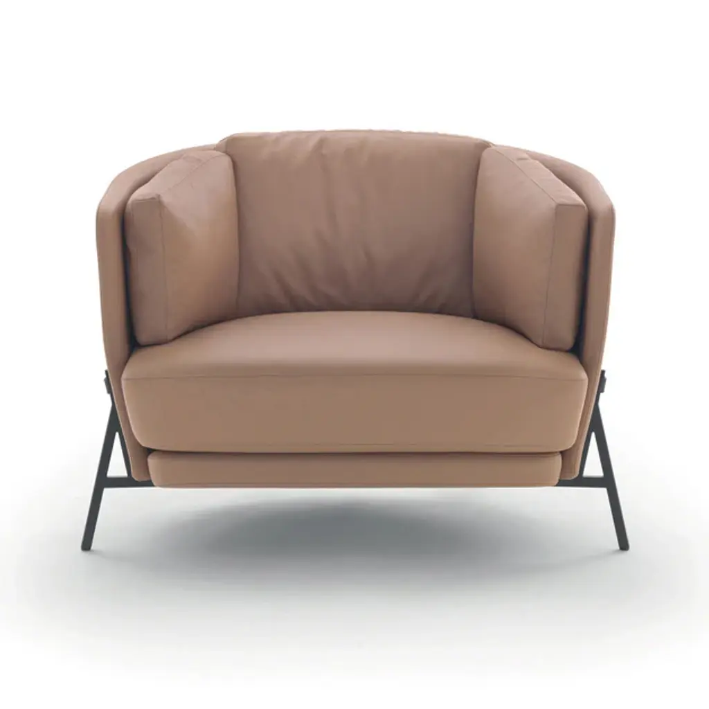 Indulge in luxurious comfort with our Cradle Lounge Chair from Arflex. Its classic triangular construction offers endless viewing angles, while its intricate design is a work of art. Relax in style and sophistication with this statement piece, perfect for any high-end setting. Highlights
