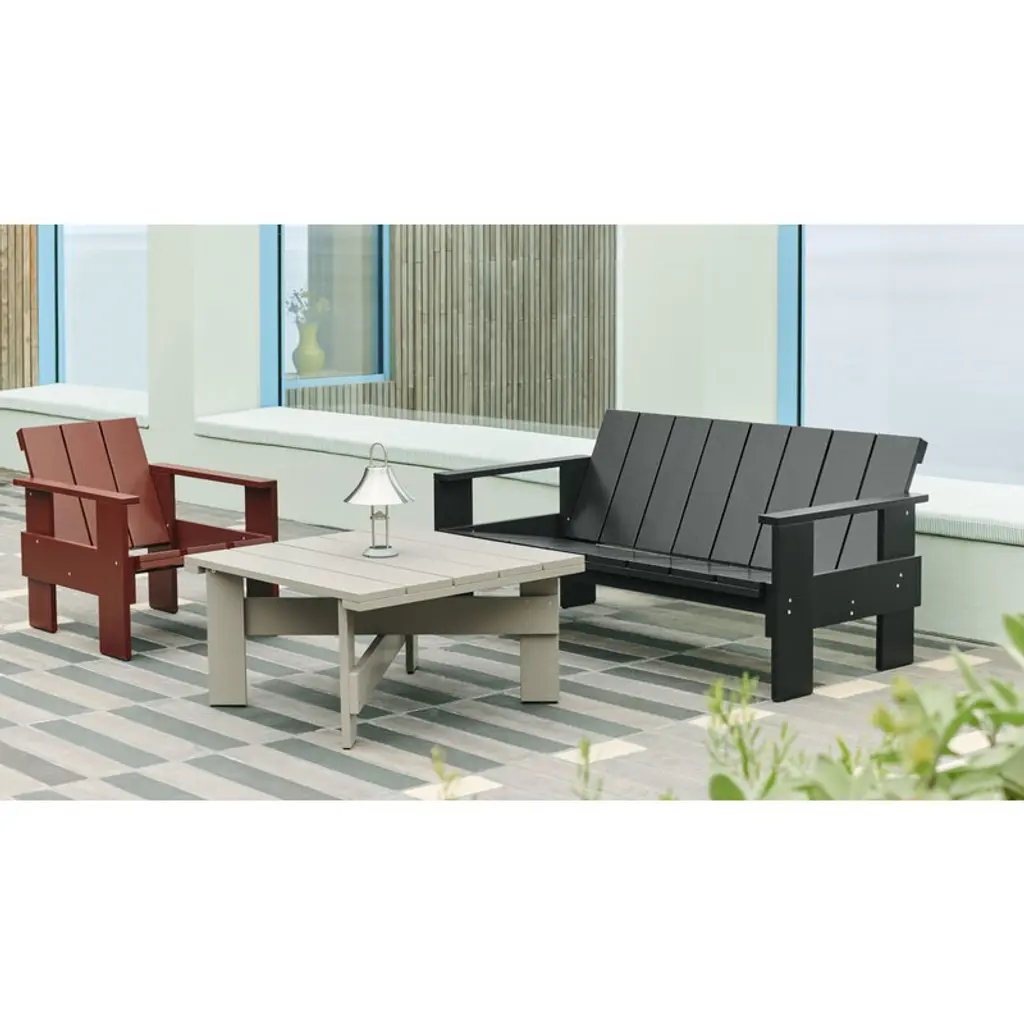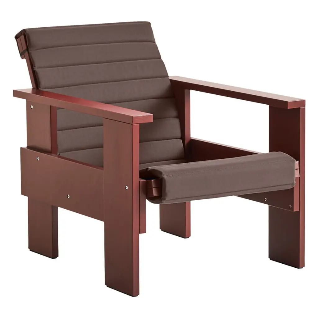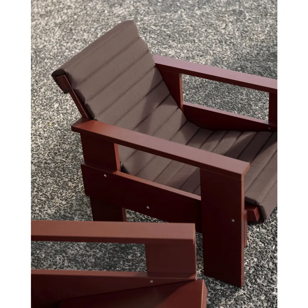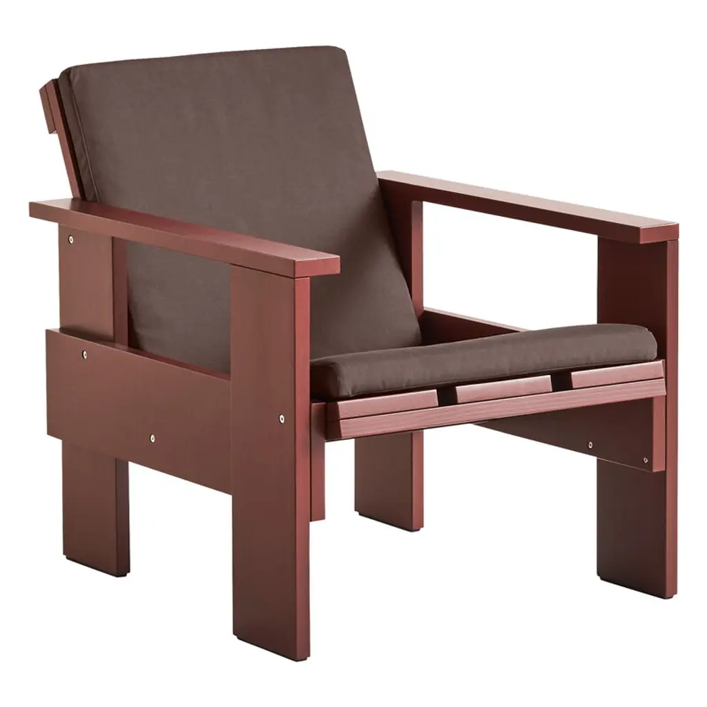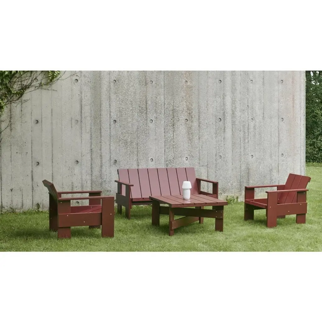 The Crate lounge chair is part of HAY’s collection of wooden outdoor furniture. The dining chair gets its sturdy character from clean and balanced lines. The deep seat and tilted backrest ensure not only a stylish appearance but also ultimate comfort, which can be even further improved with plush seat cushions, sold separately. The Crate terrace chair is based on the original chair designed by Dutch architect and designer Gerrit Thomas Rietveld in 1934. At that time, the chair was made from leftover wooden shipping crates, but the Rietveld Originals and HAY reinterpretation uses lacquered pine as the material. Finished with a weatherproof coating, the Crate lounge chair is ideal for outdoor spaces from the terrace to the garden and balcony.