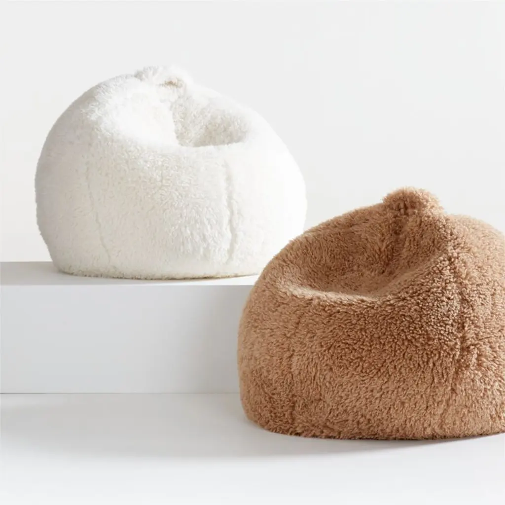 Cream White Small Mongolian Faux Fur Kids Lounge Bean Bag Chair