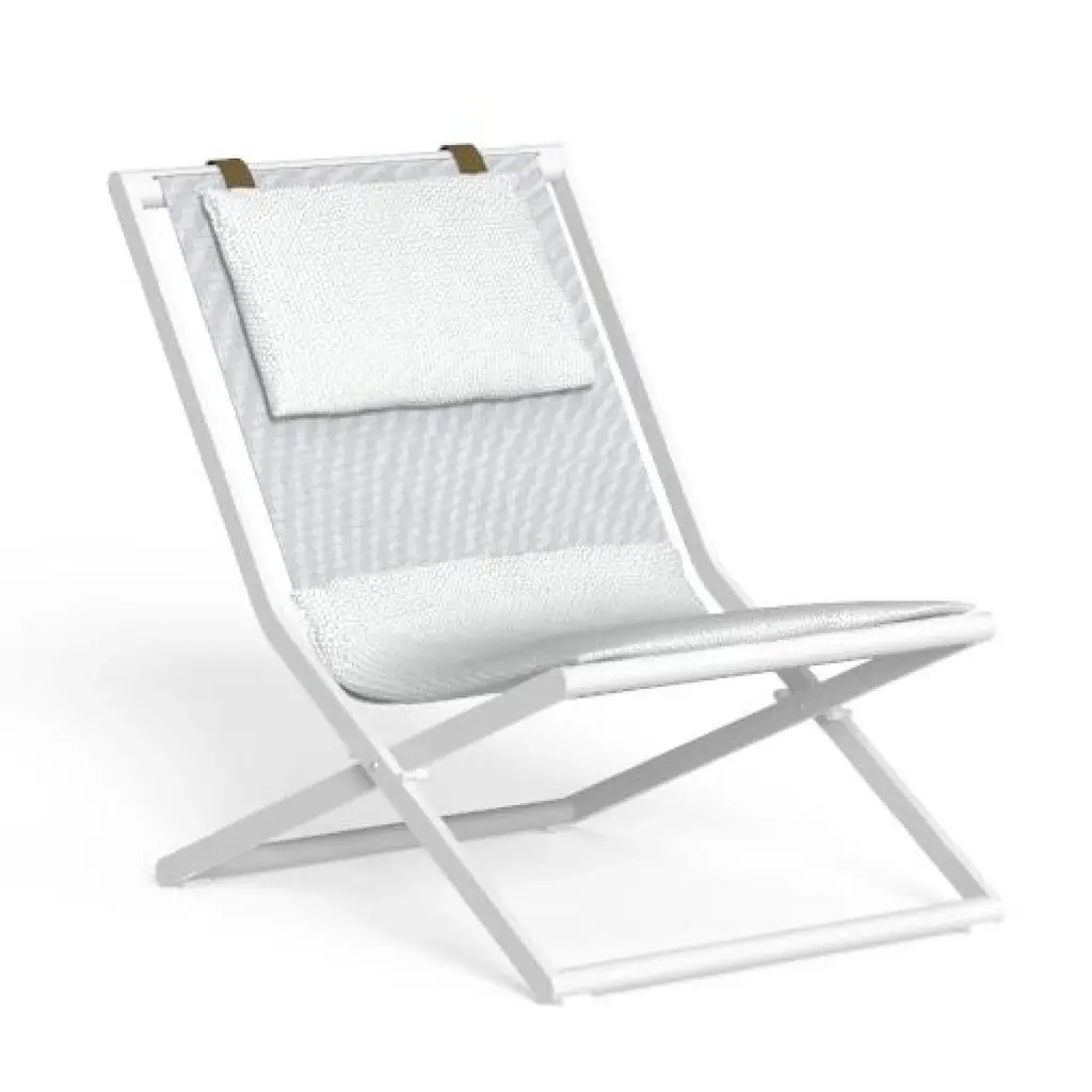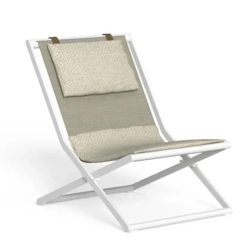 The Riviera deckchair, made of aluminum, underlines the clear and sophisticated style of the product. The different available colors, both for the structure and for the seating, allow the piece to tastefully decorate any kind of surrounding space.