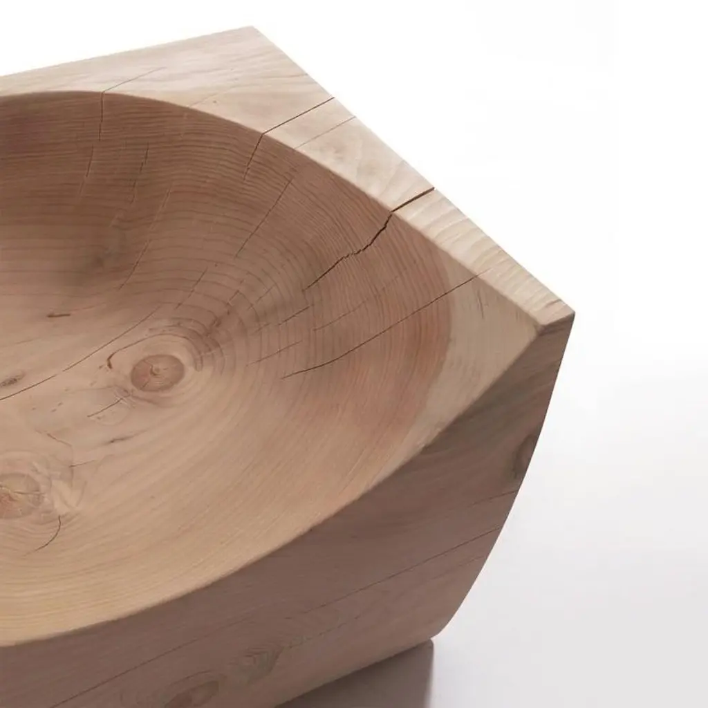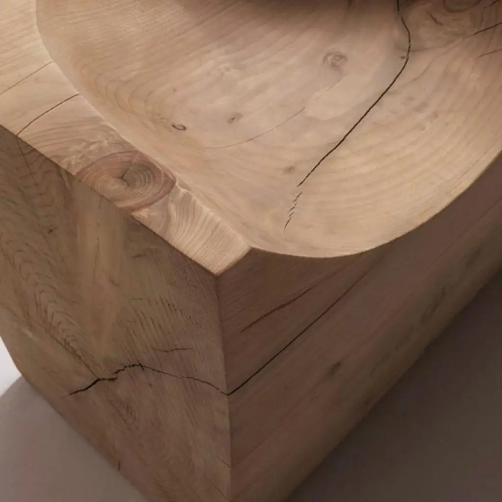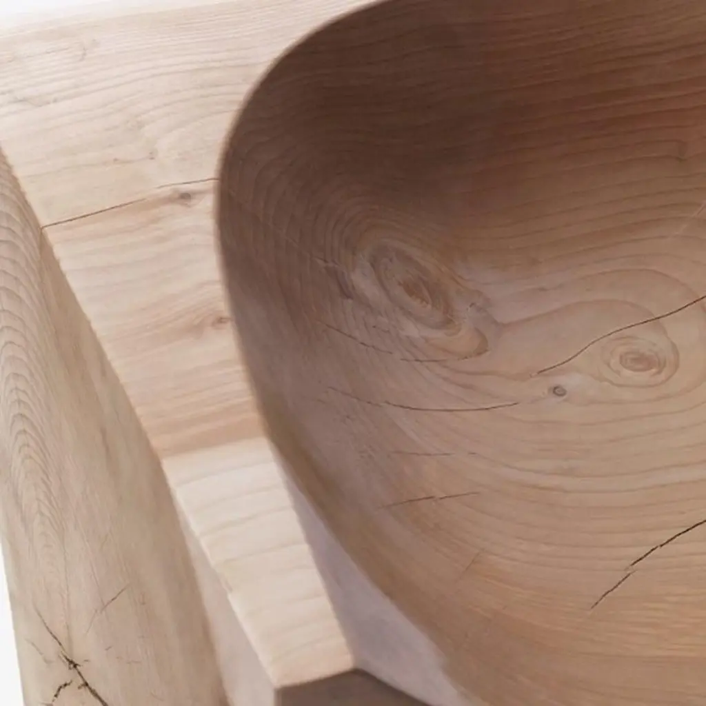 Stool or chair curved made in natural solid cedar woodwith natural pine extract wax treatment. Originalsubtle decoration piece.Solid cedar wood include movement, cracks and changes in wood conditions, this is the essential characteristic of natural solid cedar wood due to natural settlement and different environmental conditions.