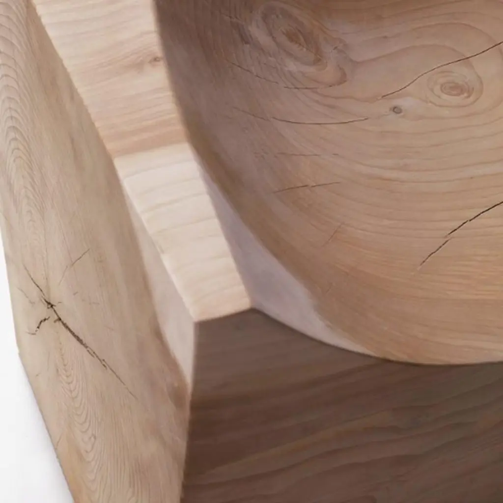 Curved Stool Or Chair In Natural Solid Cedar Wood