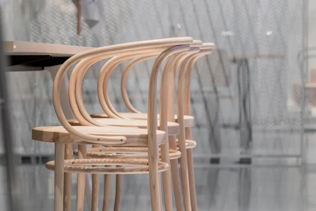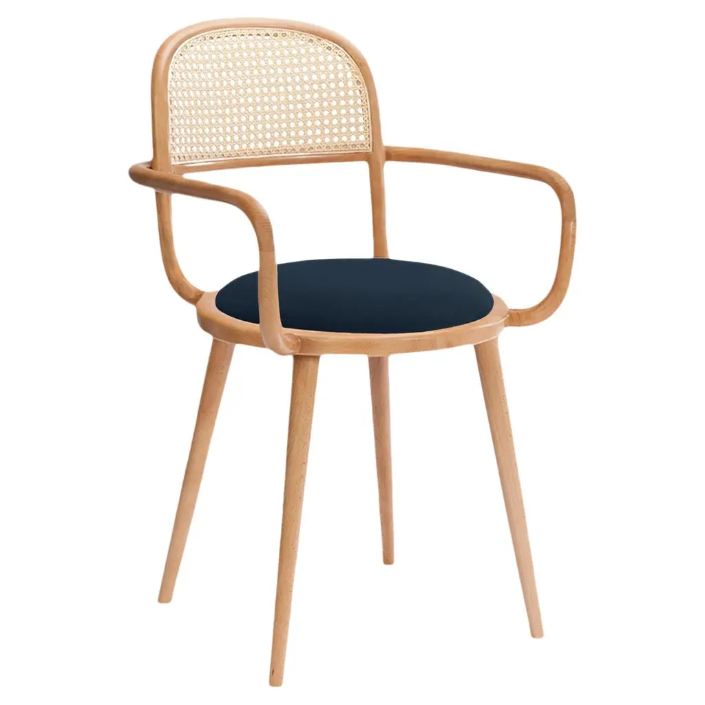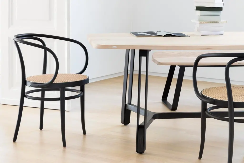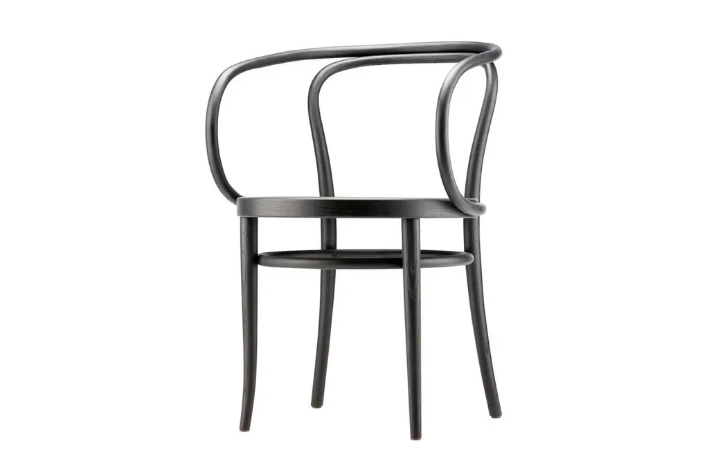Range 210 Rcanework seat and back- rest, reinforcing synthetic mesh beneath the seatThis elegant bentwood classic is a masterpiece in its construction and production: the projecting frame that forms both the backrest and armrest is bent into its form from a single piece of solid beech wood. Like the original model of all bentwood chairs, no. 214, chair no. 209 also consists of only six parts. Due to its aesthetic reduction in combination with the organic form, it almost looks like a sculpture. Swiss architect Le Corbusier was fascinated with it and used it in many of his buildings, for example the Weissenhof Estate in Stuttgart in 1927. He confirmed that "... this chair has nobility." It is produced in our Frankenberg facility.Open back or with backrest. Seat and backrest with cane work or covered with leather or fabric. Seat also available as moulded plywood seat. All wooden parts in stained beech. Also available in "Pure Materials" versions.