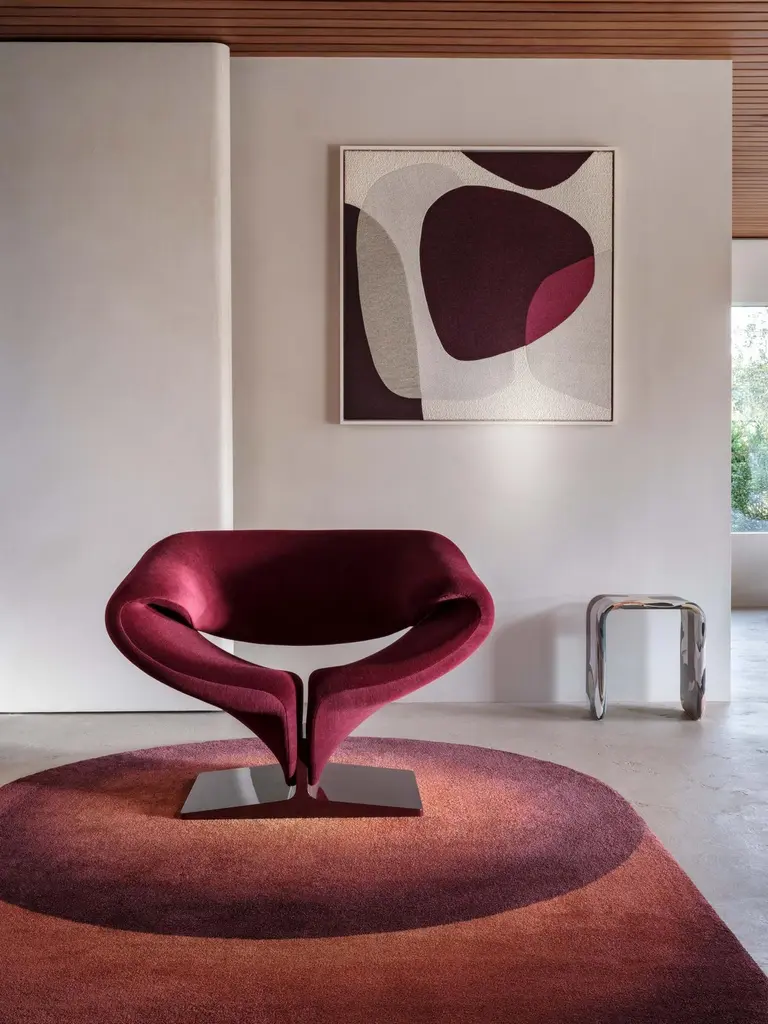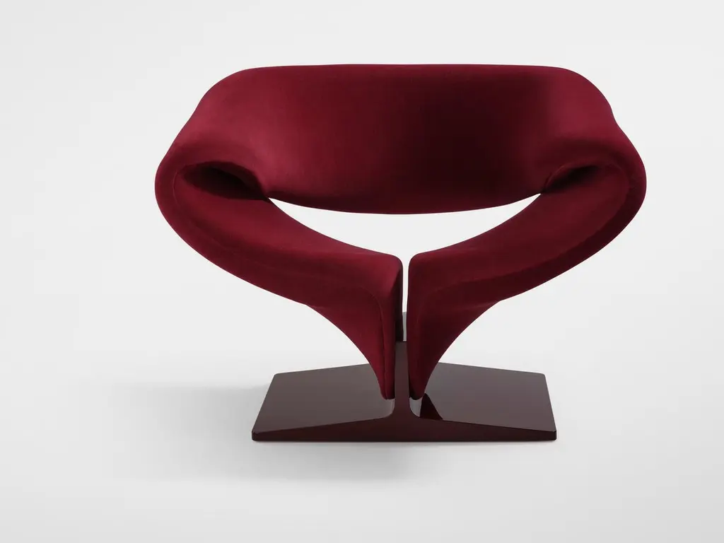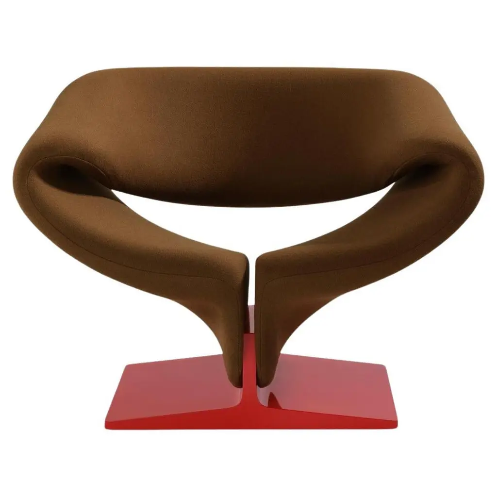 A completely upholstered design by Pierre Paulin from 1966 and a professional, innovative vision on the well-known ribbon form. Metal frame with horizontal springs, covered with foam and stretch fabric. A lacquered pressed-wood pedestal. A beautiful example of applied art. Featured in the collection of the National Gallery of Victoria in Melbourne, Australia. Base: Multiplex foot. High gloss laquered in: Ral 3000 red, Ral 9005 black, Ral 9010 white, Silvergrey. With plastic gliders. Frame: Metal frame pasted over with webs and cutted foam. Upholstery: We advise to upholster the Ribbon Chair in Kvadrat Tonus or a fabric from the Momentum-collection by Jack Lenor Larsen. Other fabrics will cause a number of pleats to appear, which cannot be avoided. Footstool dimensions (P 582): H 48 cm x W 76 cm x D 50 cm. Grade AA FabricPlease note that the item title reflects the primary image. Additional images may reflect the product in different colorways that are also offered on 1stdibs.