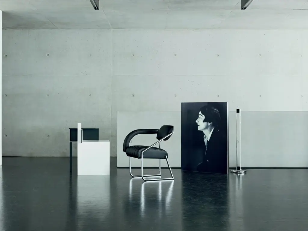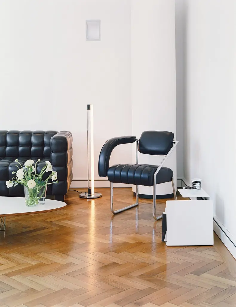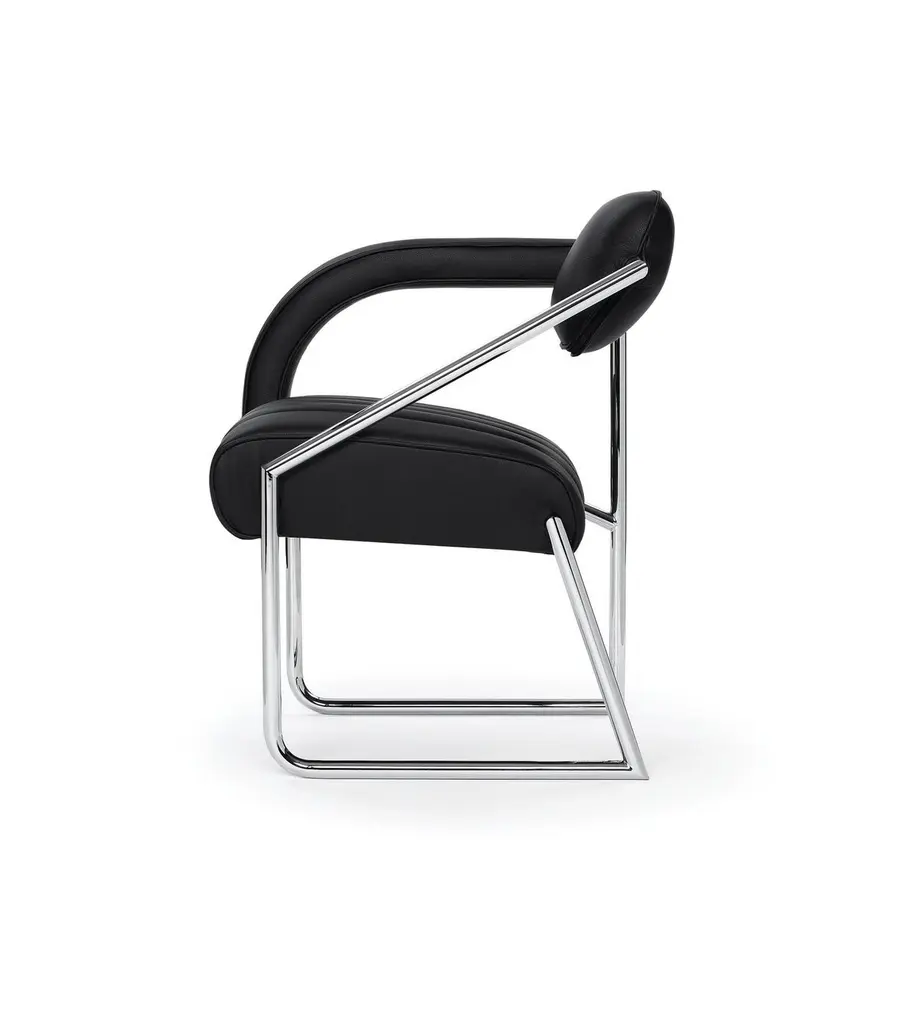 It piques and provokes what one might expect of it, and yet it is inexplicably aesthetic and harmonious - a nonconformist on velvet paws. Eileen Gray commented quite pragmatically on her work with typical understatement: "An armrest was omitted in order to leave the body more freedom in movement and to allow it to bend forward or to turn to the other side unrestricted." Seldom was a nonconformist more ready to talk.Materials: Frame of chromium-plated steel tubing. Seat has a beech frame with rubber webbing. Upholstery: Polyurethane with polyester fiber. Cover in leather.Dimensions: W 57 cm, D 63 cm, H 78 cm.Classic leather.