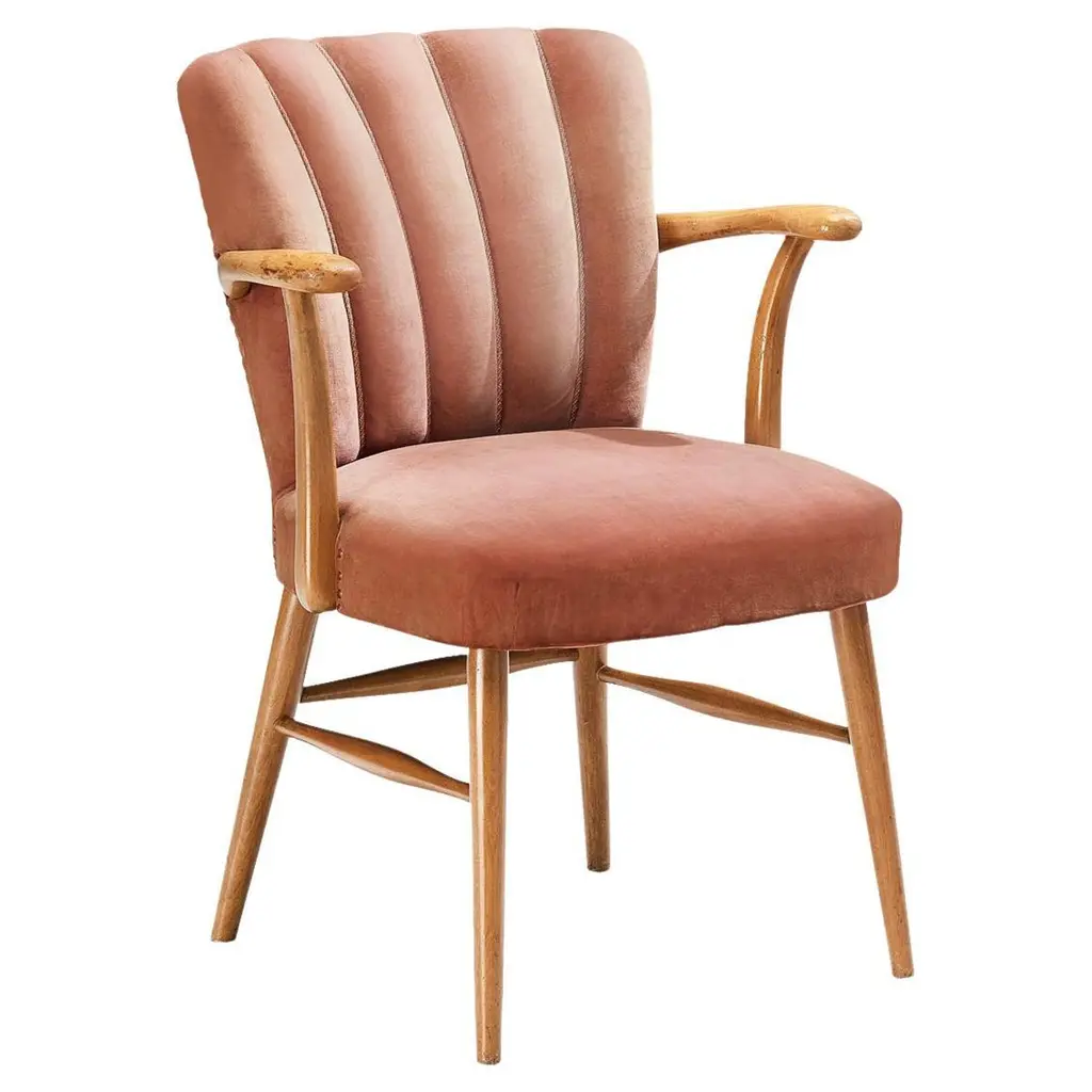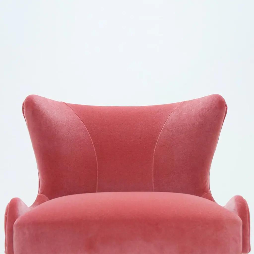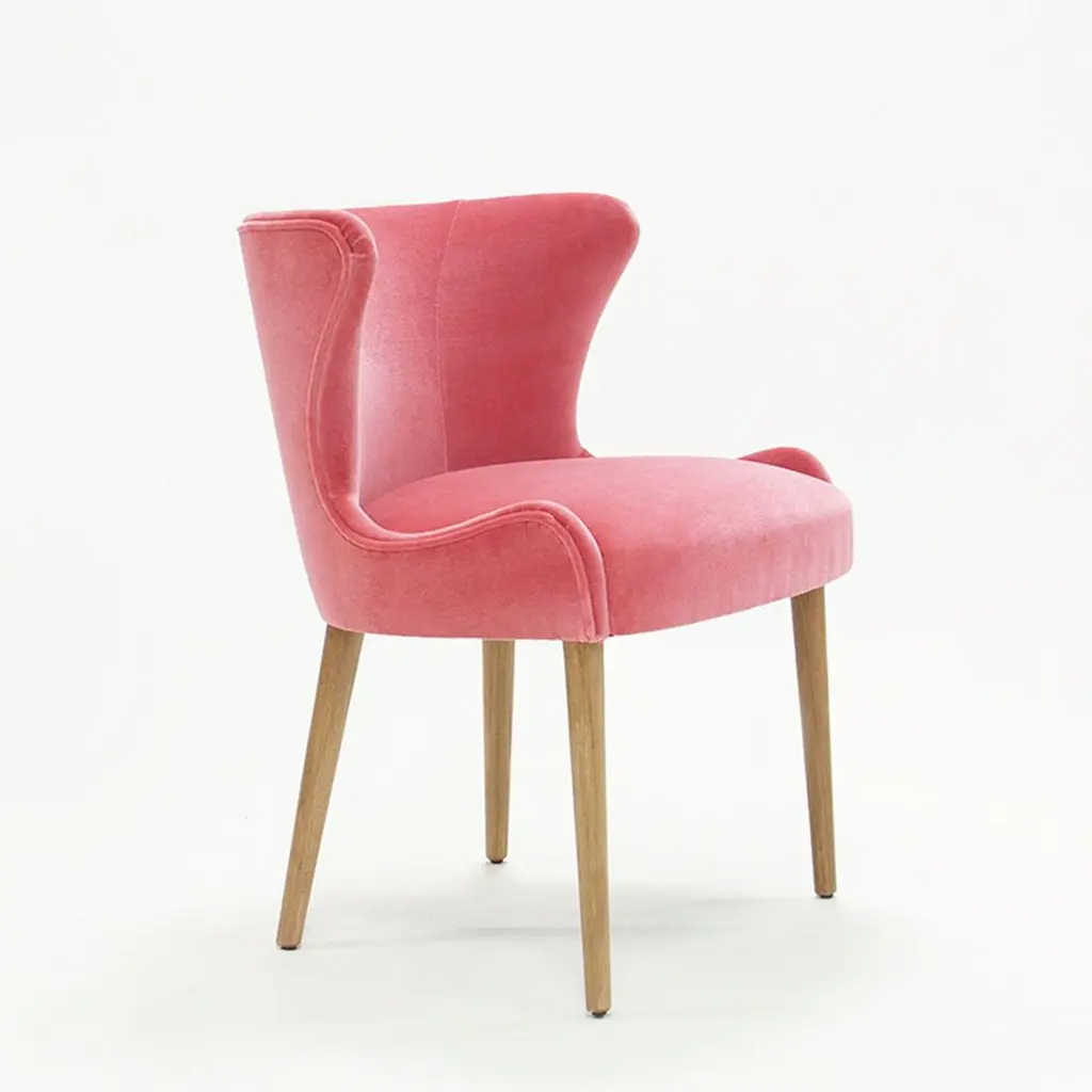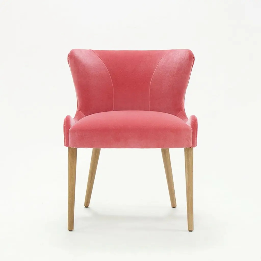 Chair Darling with structure in solid wood, upholsteredseat and back, covered with high quality ruby pink velvet fabric. Also available with other fabrics on request.