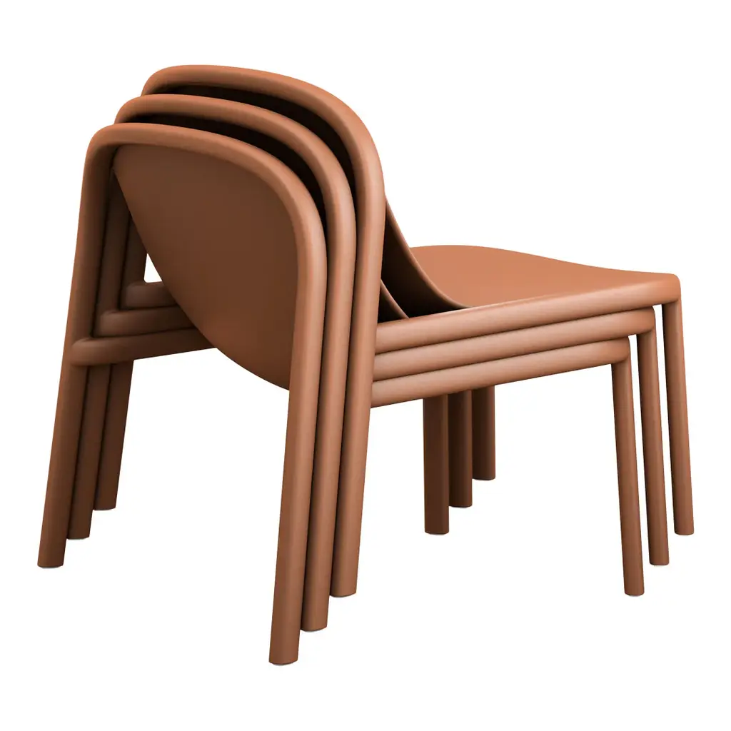 As our friends at Blu Dot playfully note, this is "The Chuck Norris of chairs." The Blu Dot Decade Lounge Chair combines architectural presence with exceptional durability in a refined form that transforms both interior and exterior environments. This versatile seating solution showcases Blu Dot's talent for creating objects that marry visual sophistication with unexpected resilience.Crafted from 100% recycled plastic, the Decade Lounge Chair represents Blu Dot's commitment to environmental responsibility without compromising aesthetic quality or functional performance. The seamless, ergonomic form creates surprising comfort through thoughtfully calibrated curves and angles that support the body naturally, proving that sustainable materials can deliver superior sitting experiences when shaped by design intelligence.What distinguishes the Blu Dot Decade from conventional plastic seating is its refined silhouette—clean lines and subtle contours create architectural presence that transcends typical outdoor furniture categories. This sophisticated form works equally well in contemporary living spaces, on sun-drenched patios, or within commercial environments seeking durable yet design-forward solutions.Practical innovations enhance everyday usability. The integrated drainage hole ensures quick drying after rain showers, keeping both the chair and its occupant comfortable in variable weather conditions. The stackable design allows for efficient storage during seasonal transitions or when reconfiguring spaces for different functions—a thoughtful feature that extends the chair's versatility beyond its immediate sitting purpose.Whether arranged in conversational groupings, paired with outdoor dining tables, or used as accent seating throughout diverse environments, the Decade Lounge Chair - Stackable by Blu Dot embodies contemporary design at its most intelligent—where sustainability, durability, and sophisticated aesthetics converge in furniture that enhances both everyday experiences and the environments that contain them.